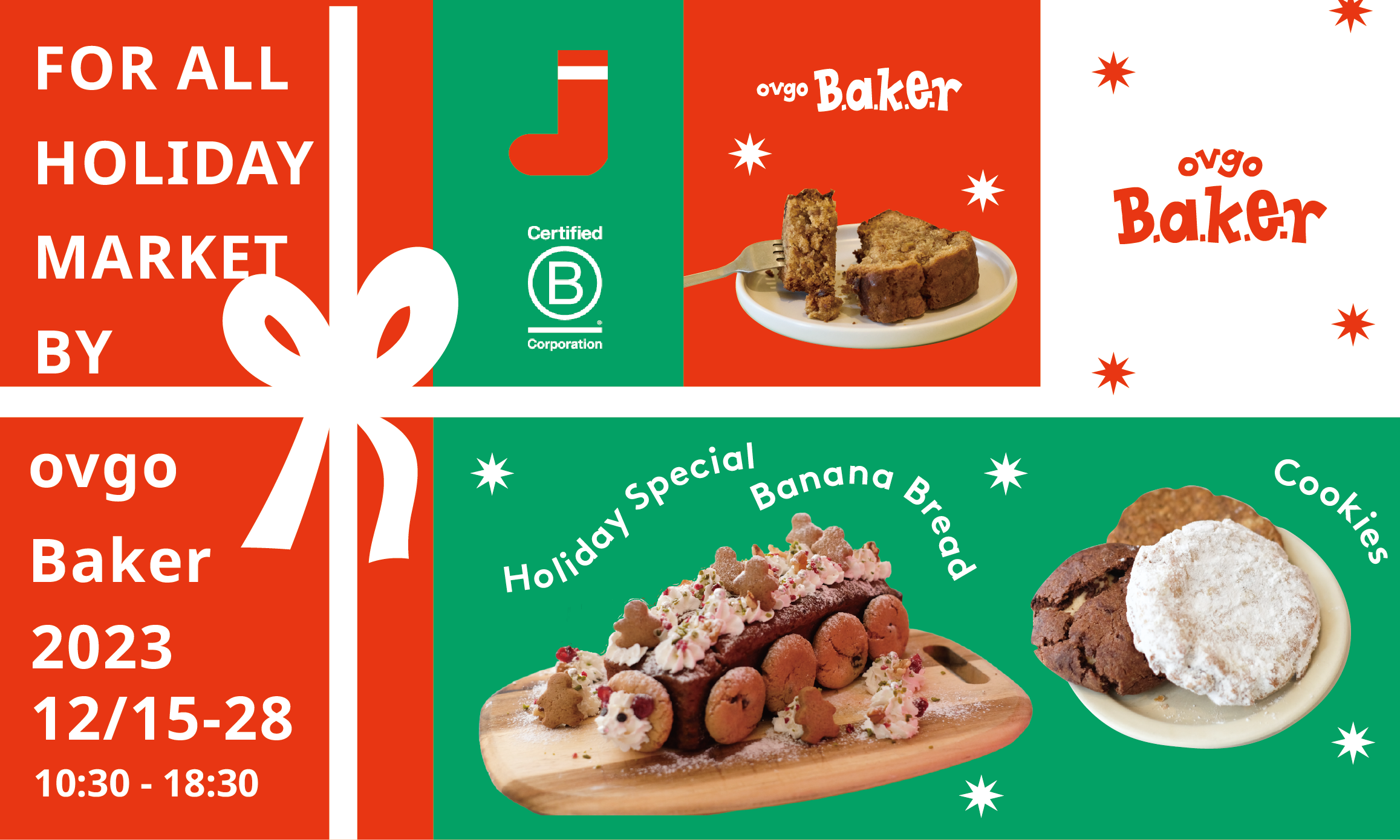 株式会社ovgo(オブゴ、所在地:千代田区西神田2-5-2 TASビル1F)が展開するアメリカンベイクショップ ovgo Baker(オブゴベイカー)は、12/15(金)〜12/28(木)の期間限定で伊藤忠Garden(東京都港区外苑前駅出口 4a より 徒歩2分)にある「ITOCHU SDGs STUDIO RESTAURANT 星のキッチン Hanare」に「For All Holiday Market by ovgo Baker」をオープンいたします。