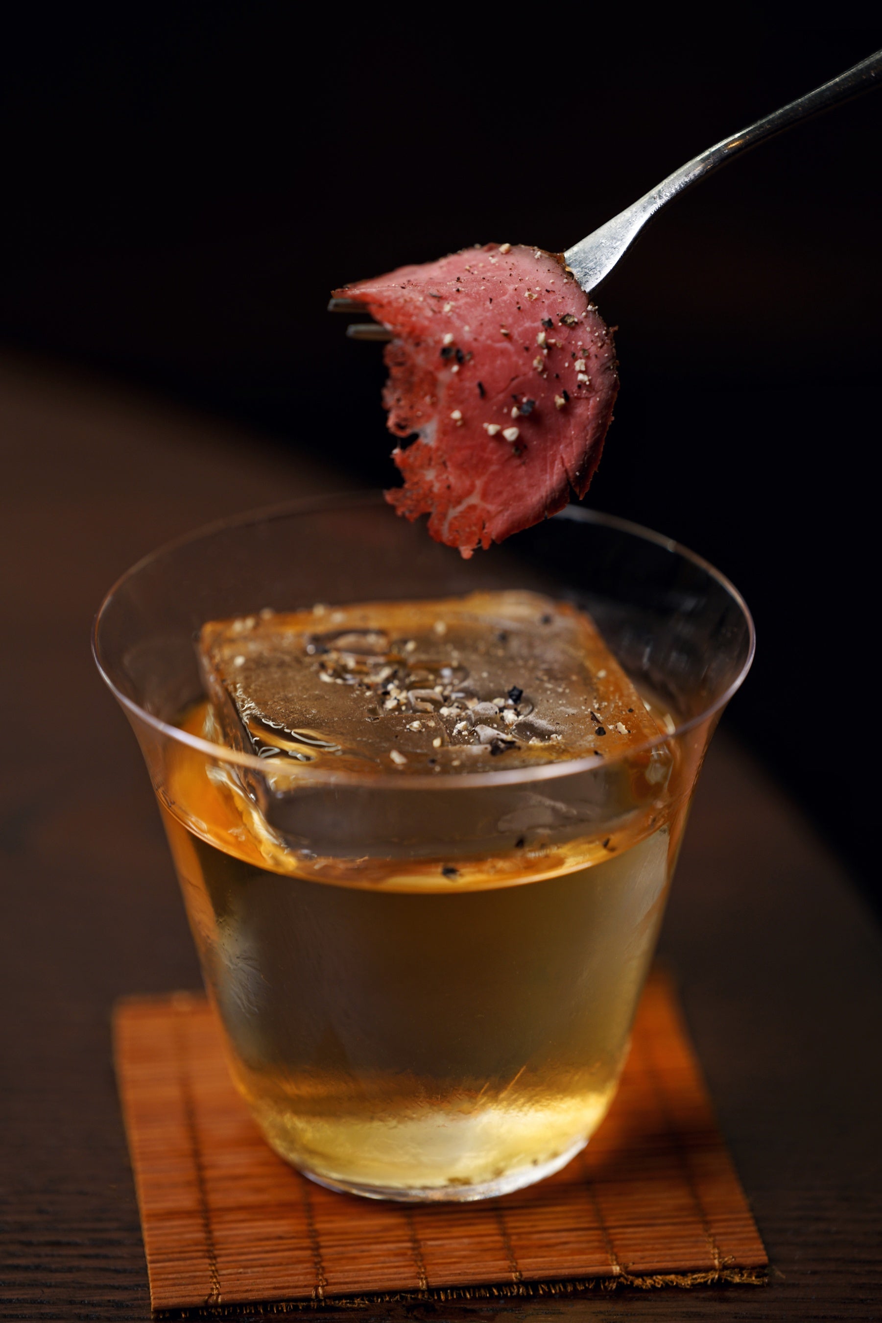 ドリンクは北海道から沖縄まで日本のご当地の要素で、馴染みのあるクラシックカクテルを発展させたシリーズを新たに制作。「北海道」はチーズに雪の結晶のモチーフ、「青森」は林檎、「神戸」は和牛、「京都」は宇治抹茶と、ゆかりのある素材とスタンダードカクテルのアイデアが融合しています。