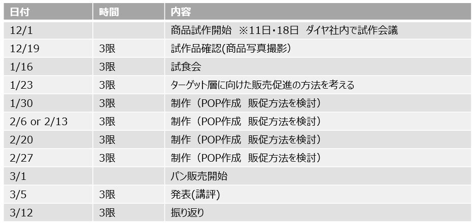 授業の中では、製造方法や原価を踏まえ、生徒たちにコンセプトシートを作成してもらい、ダイヤが通常行っている企画会議と同様のプロセスを経て商品化してもらいます。また、3月の商品発売に向け、どのように売り出していくのかというマーケティングの部分についても学びの場を提供する予定です。