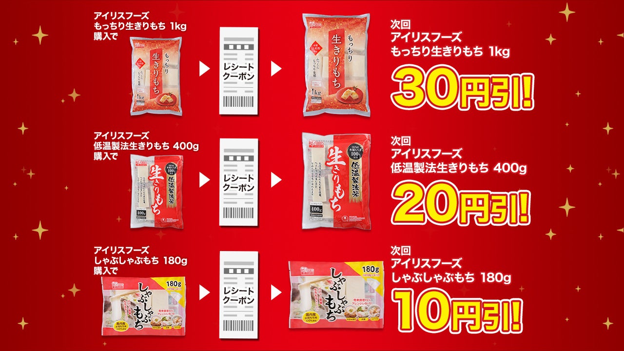 対象商品をご購入いただきますと、次回お買い物時に同一商品にお使いいただける値引クーポンを進呈します。