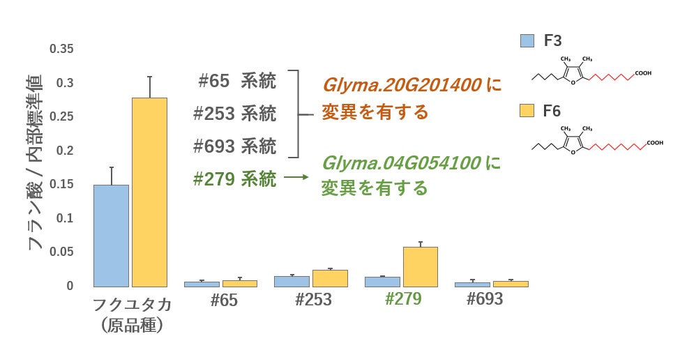 当社、佐賀大学および九州大学は、大豆油の明所臭を抑制するため、明所臭の原因となるフラン酸が欠損する大豆の開発に取り組んできました。このたび、当社、佐賀大学および九州大学は、フラン酸が減少した突然変異系統の大豆を見いだし、これを利用して、大豆のフラン酸の生合成に関わる遺伝子(Glyma.20G201400 および Glyma.04G05690)を世界で初めて発見しました。