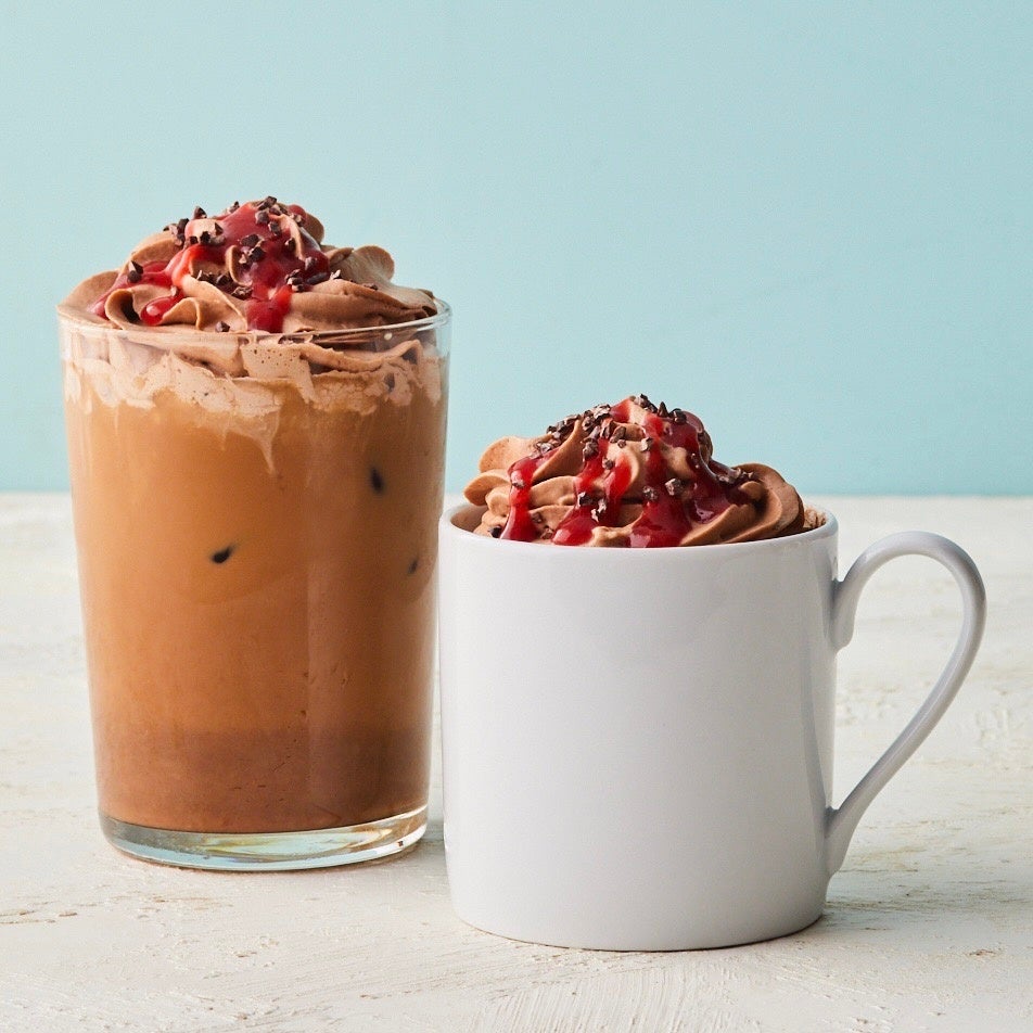 モカベースのカフェオレに、ほのかにストロベリー風味が感じられる冬季限定のドリンクです。チョコホイップや、ほろ苦いカカオニブ、ストロベリーソースをトッピングし、よりリッチな味わいになるように仕上げました。豆乳のまろやかなコクが味わえるストロベリーショコラソイオレもおすすめです。