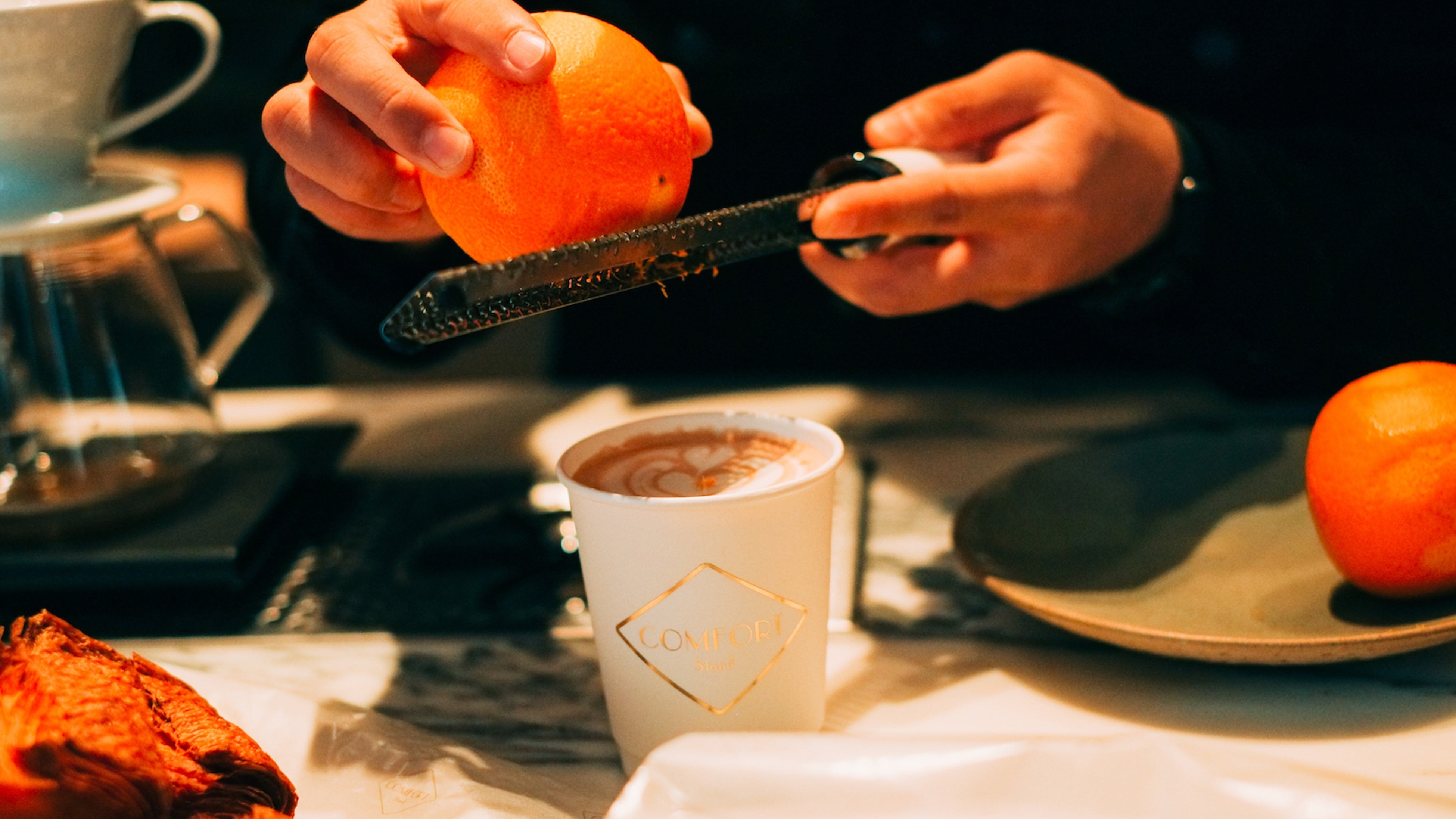 座席数は24席。ゆっくりと落ち着いた空間で、ハンドドリップによるこだわりのコーヒーやペイストリーをお楽しみいただけます。コーヒーには、スペシャリティロースターとして人気のAnd Coffee Roasters(熊本)や、ETHCUS coffee roasters(静岡)、Leaves Coffee(東京)などの豆を日替わりで使用しているほか、COMFORT Standオリジナルブレンドもご用意。
