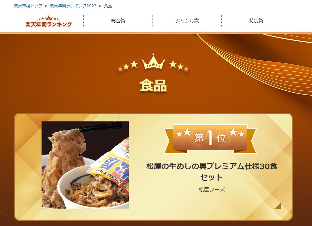 総合10位 食品1位 松屋フーズ 受賞 初の快挙