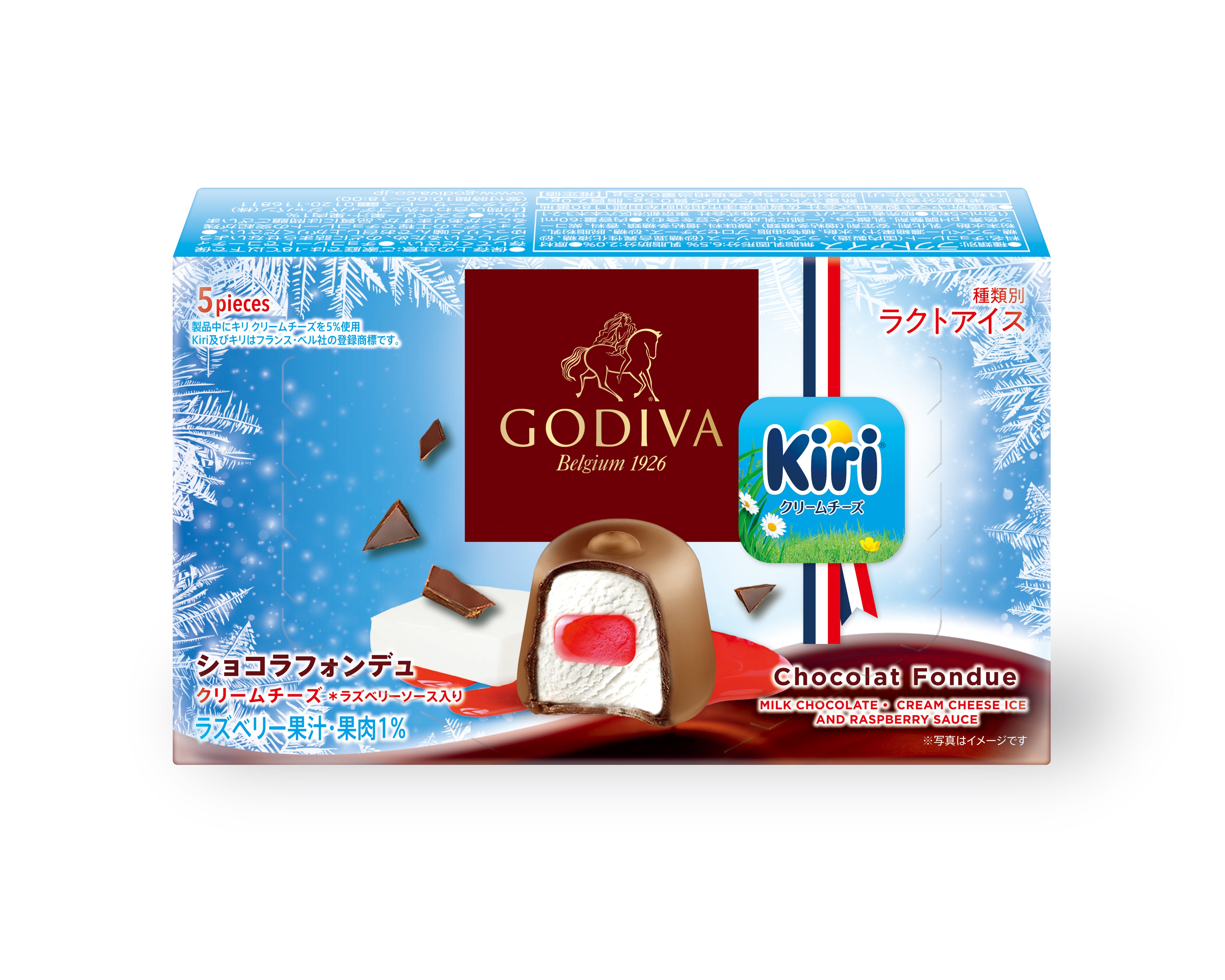 なめらかで濃厚なくちどけの「キリ」を使用したクリームチーズアイスとリッチなミルクチョコレートアイスに、甘酸っぱいブルーベリーソースを加えました。「キリ」のクリームチーズアイスとゴディバのミルクチョコレートの贅沢なハーモニーに、ブルーベリーソースが良いアクセントとなり口の中で味わいが広がります。