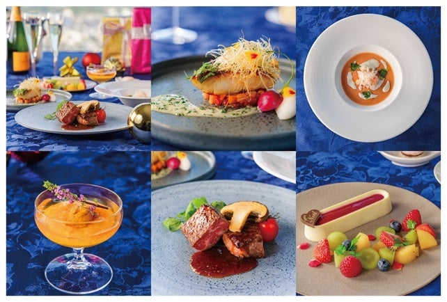 カクテルグラスに艶やかに輝く「キャロットムース ウニを添えて」で始まり、冬が旬、香りとほろ苦さが魅力の春菊をソースにとじ込めた「白身魚のポワレ 金沢春菊の白ワインソース」や、石川・能登の自然が育んだ大きく肉厚な原木しいたけが目をひく「和牛ロースステーキ のと115添え 和風ソース」など、クリスマスにふさわしい贅沢な食材を使用したスペシャルメニューです。