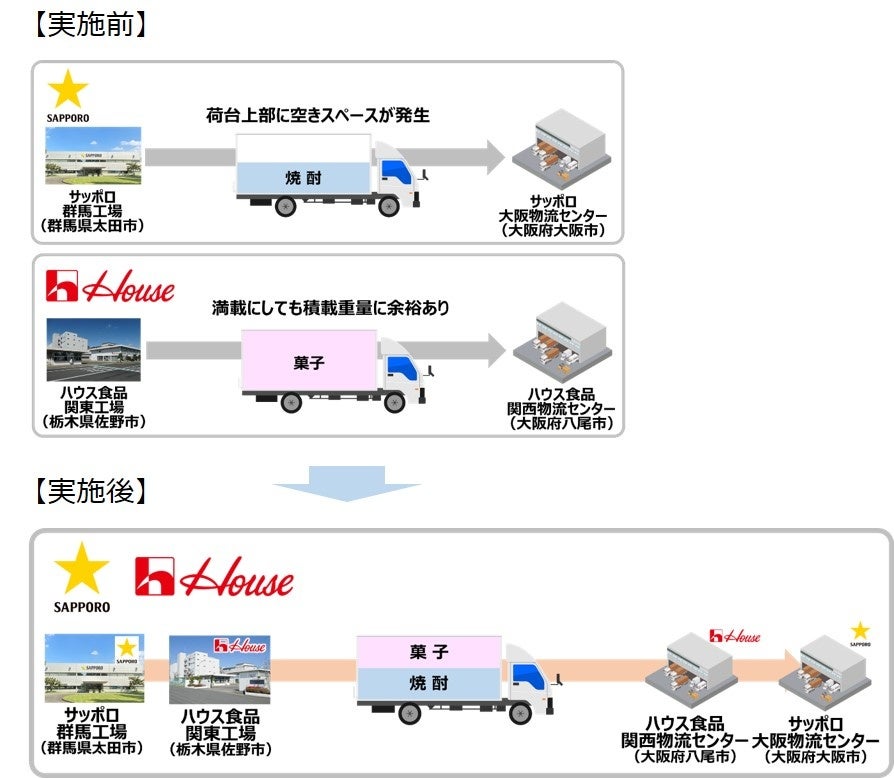 ■サッポログループとハウス食品による北関東~大阪間での共同輸送