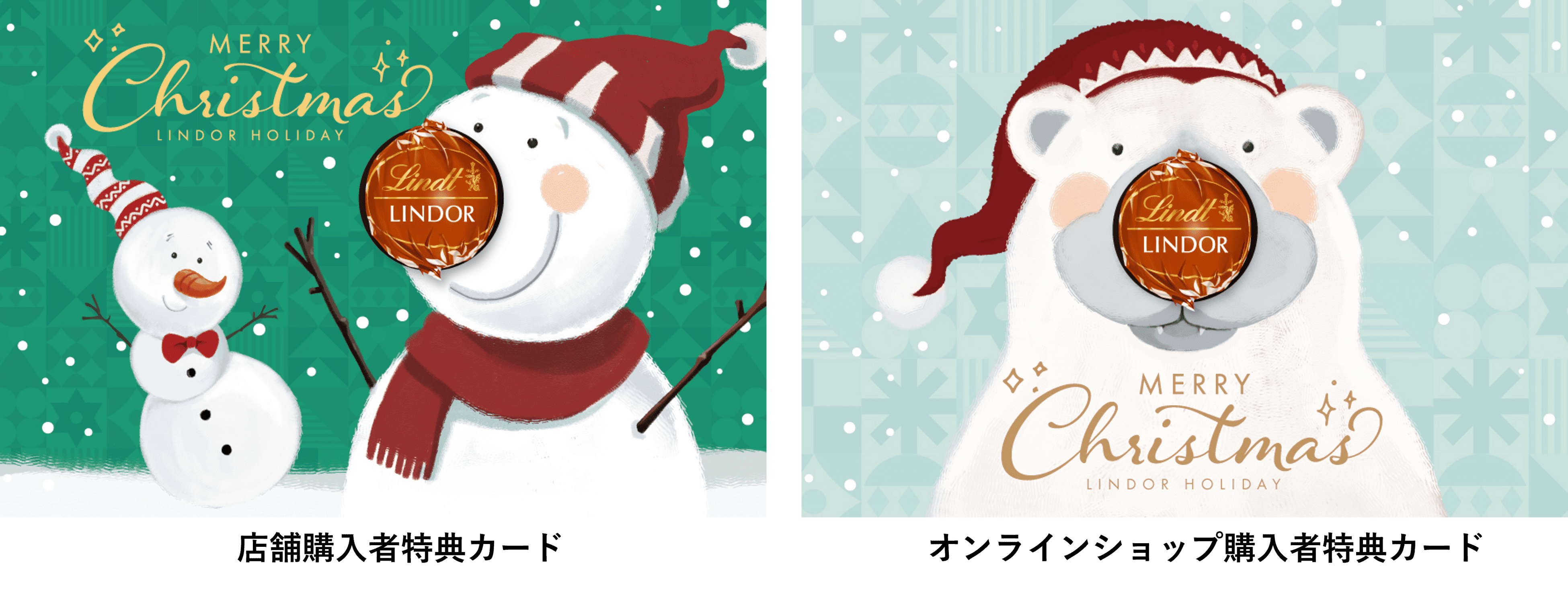 2023年11月13日(月)~ 12月25日(月)の間、全国90店舗を対象に4000円(税込)以上、オンラインショップで5000円(税込)以上をご購入いただいたお客様には、イラストのお鼻にリンドールをはめこむことができ、ツリーのオーナメントにもなるクリスマスカードがもらえます。