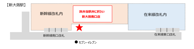 株式会社ジェイアール西日本フードサービスネット(所在地:大阪府大阪市、代表取締役社長:貴谷健史)は、JR新大阪駅新幹線南口改札横に、『旅弁当駅弁にぎわい新大阪南口』店を、2023年12月13日(水)にオープンいたします。