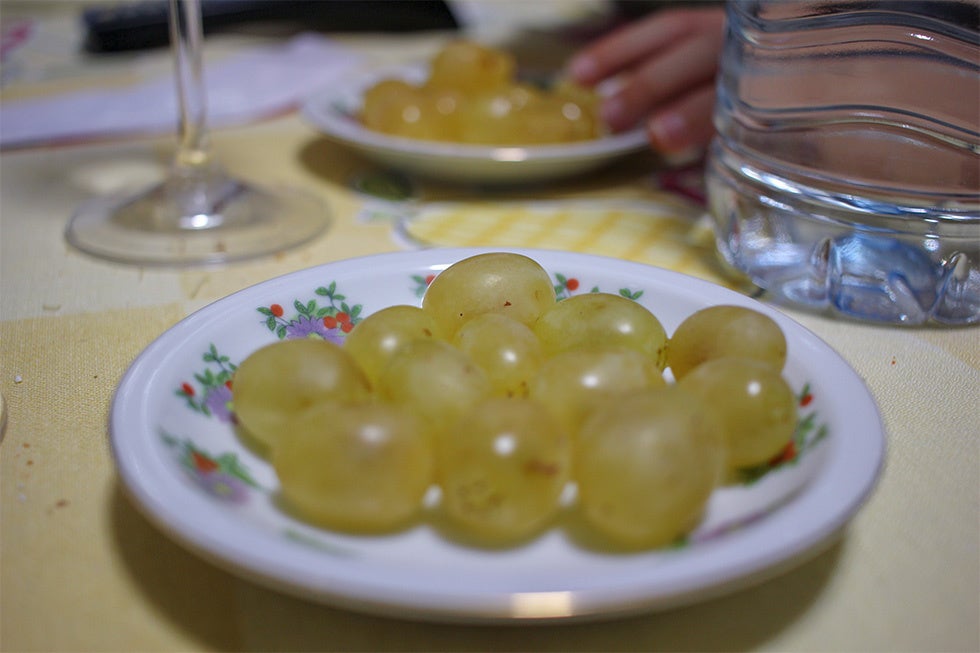 アメリカやブラジルでは様ざまな国にルーツを持つ方々の回答だと推測される、料理や、ザクロやブドウなど果物も散見されました。(写真:ブドウ:大晦日に12粒食べると幸福になるというスペインの風習)