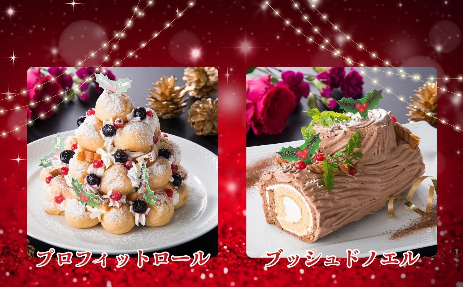 更に、食後のデザートでは、心も踊るクリスマススイーツ『プロフィットロール』と『ブッシュドノエル』が登場!