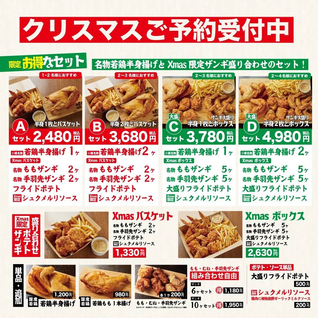 なるとキッチンでは12月22日(金)〜25日(月)4日間限定のお得なクリスマスセット(要予約)を販売致します。今年は小樽のソウルフード「若鶏半身揚げ」と名物ザンギにオリジナルソース(シュクメルリソース)がついた豪華クリスマスBOXに!外はパリっと、中はふっくらジューシーな鶏がまるごと!贅沢なサイズ感はクリスマスの雰囲気を演出致します。