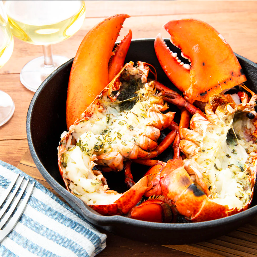 中心からまっぷたつに割って、塩・胡椒やハーブを散らし、フライパンでグリルするのも手軽な調理法です。活きたオマール海老は割るときに暴れることもありますので、充分注意してさばいてくださいね!