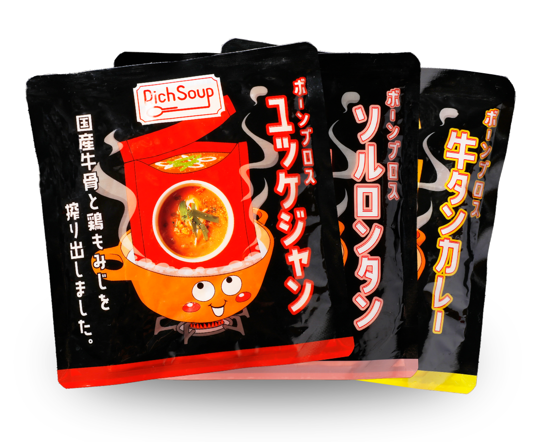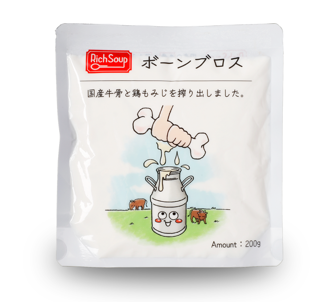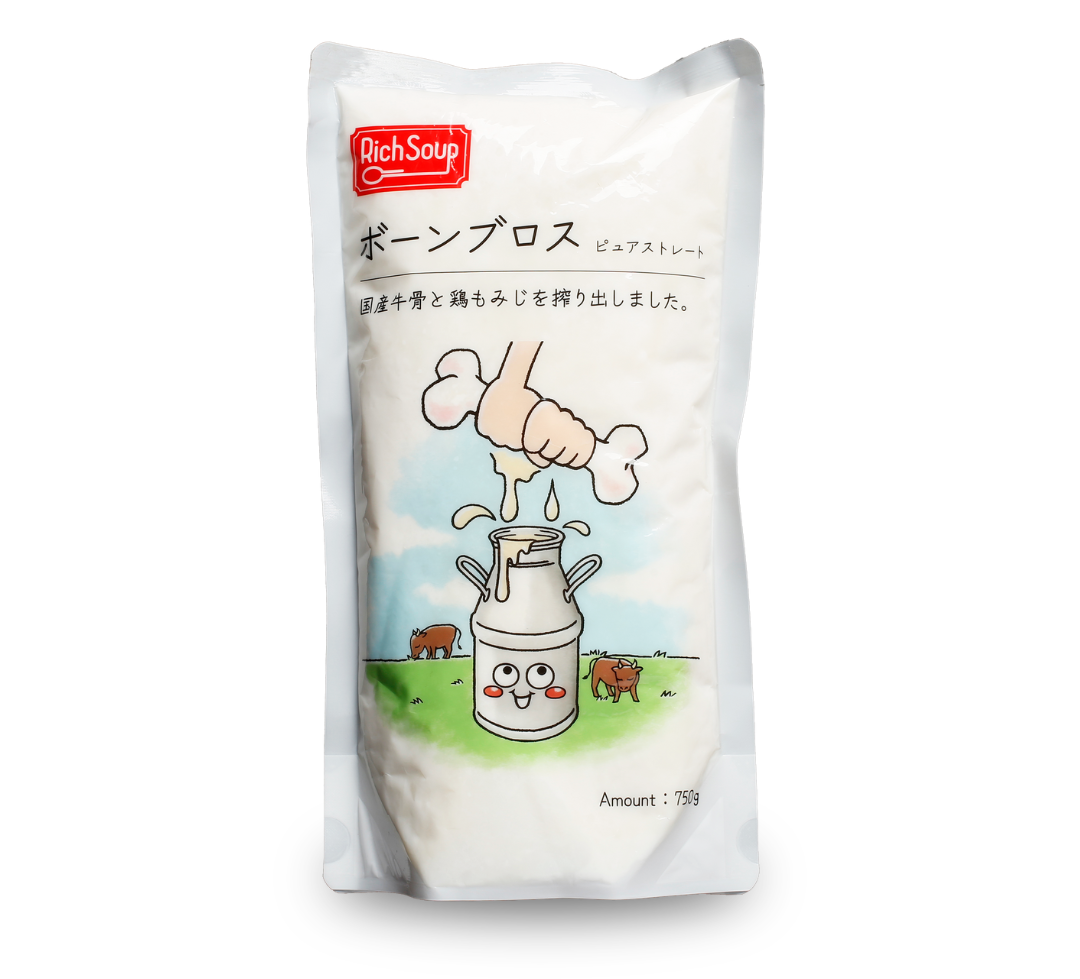 “Rich”には「贅沢な・濃厚な・豊富な」の3つの意味が込められており、なかなか家庭では再現できない濃厚さで、”旨味”も”栄養”も豊富に溶け込んだボーンブロスのブランドであることを表しています。またレトルト殺菌加工を施しており、常温での長期保存を可能にしております。コーヒー感覚でそのまま飲んだり、料理に活用したり、たくさんの方々にボーンブロスを日常的に飲んでいただくため誕生した新しいスープブランドです。