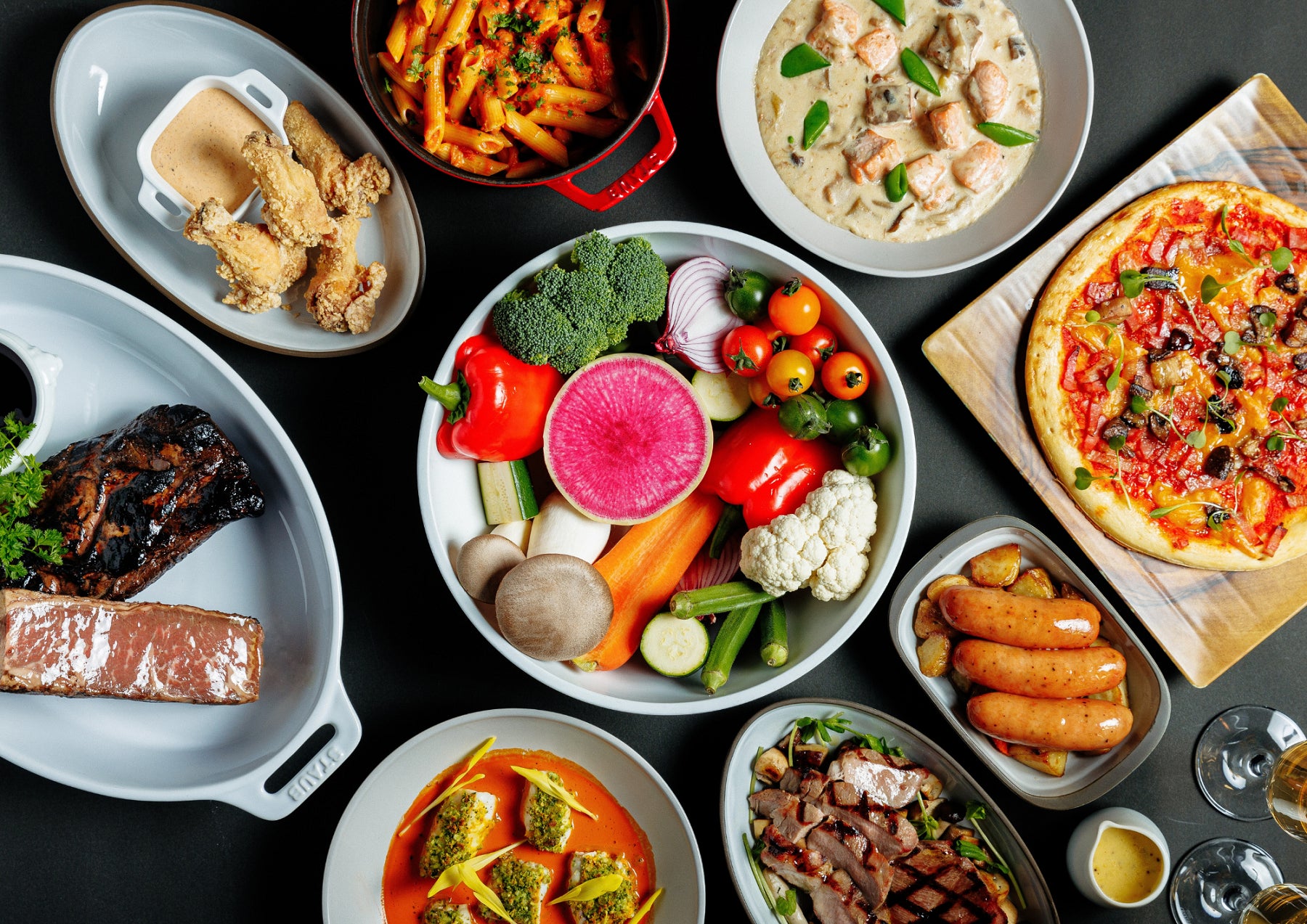 米国のセントレジスホテルやフォーシーズンズホテルをはじめ、名だたるホテルのフレンチレストランでの豊富なシェフ歴を誇るヒョン・ジョセフが、味わいはもちろんのこと、目でも楽しめる贅沢な料理をご用意。お好きな野菜やフルーツをお選びいただける食べ放題のサラダバーや、シェフ特製のロースト、ソーセージ、シチュー、ベイクドフィッシュ、ピザ、年越し蕎麦、ストロベリーケーキなど、多彩なメニューを取り揃えています。聖夜をお腹いっぱいに過ごしたい方も、寛ぎながら特別なディナータイムを満喫したい方も、今年のクリスマスは魅惑的な雰囲気の空間でシェフが趣向を凝らしたお料理をいただきながら、ご家族や大切な方と楽しいひとときを過ごしませんか。