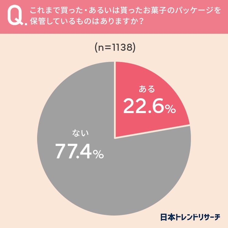22.6%の方が「これまで買った・あるいは貰ったお菓子のパッケージで、保管しているものがある」と回答しています。