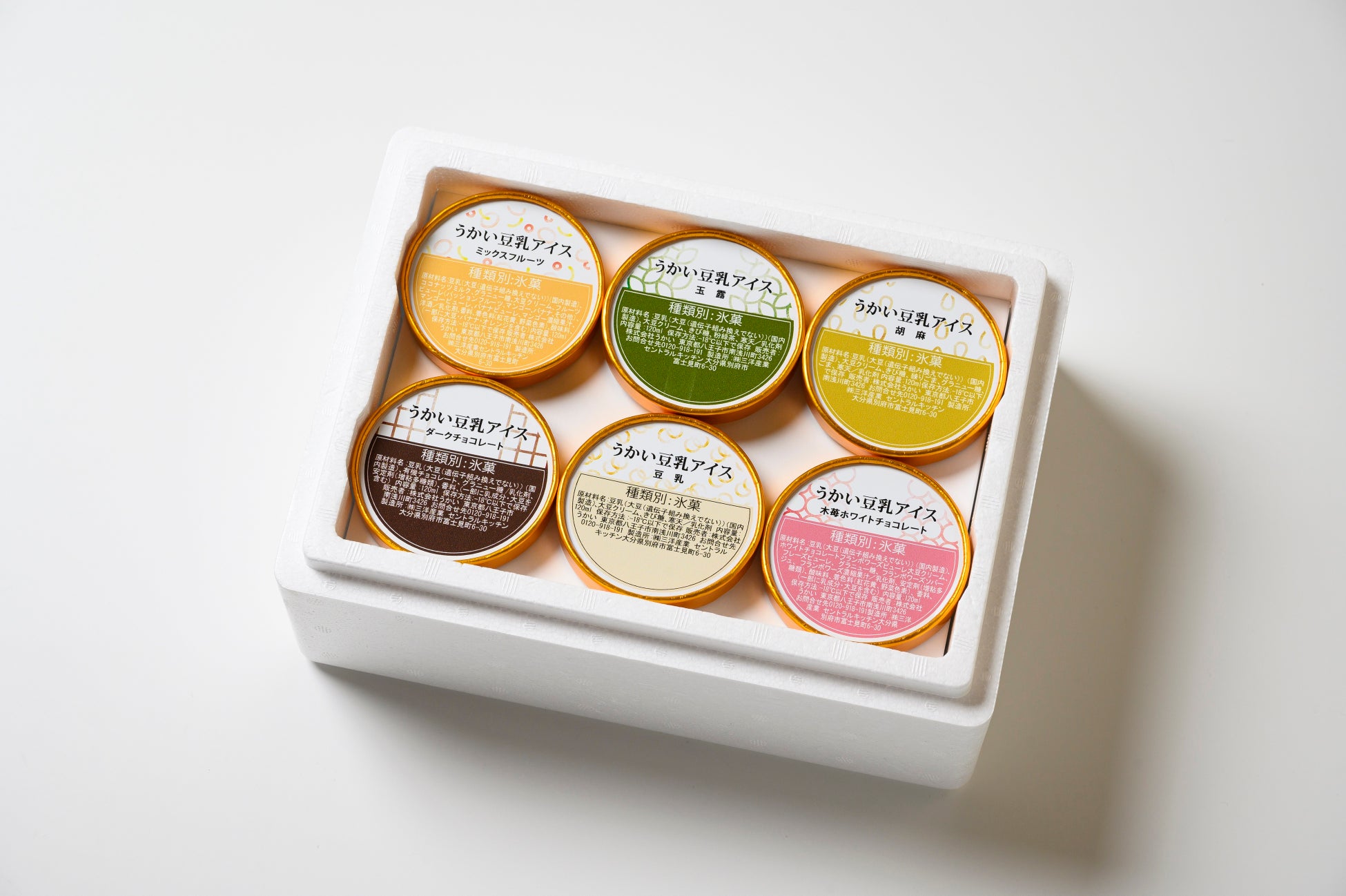 また、「とうふ屋うかい」の自家製豆乳を使用した6種類の味わいが楽しめるアイスの詰め合わせも新発売。