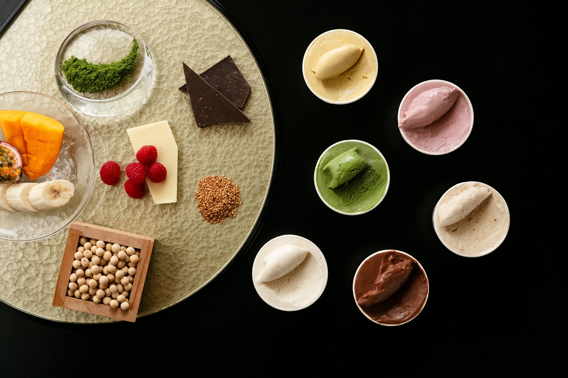 東京・神奈川に3店舗を構えるとうふ料理店「とうふ屋うかい」。とうふの原料として自社工場で作られる豆乳の魅力を伝えたい想いから、バラエティ豊かな豆乳アイスを作りました。大豆の豊かなコクと、豆乳ならではのすっきりとした後味。まるでクリームのようになめらかな口どけが誘う、至福のひとときをお楽しみください。とうふ屋うかい各店の料理長を歴任する菊地剛と、アトリエうかいグランシェフパティシエの鈴木滋夫が作り上げました。