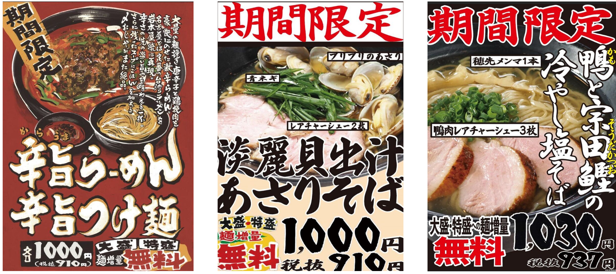 FC本部の商品開発部より、全国的ならーめんトレンドを踏まえた「季節限定商品」を定期的にリリースさせていただきます。