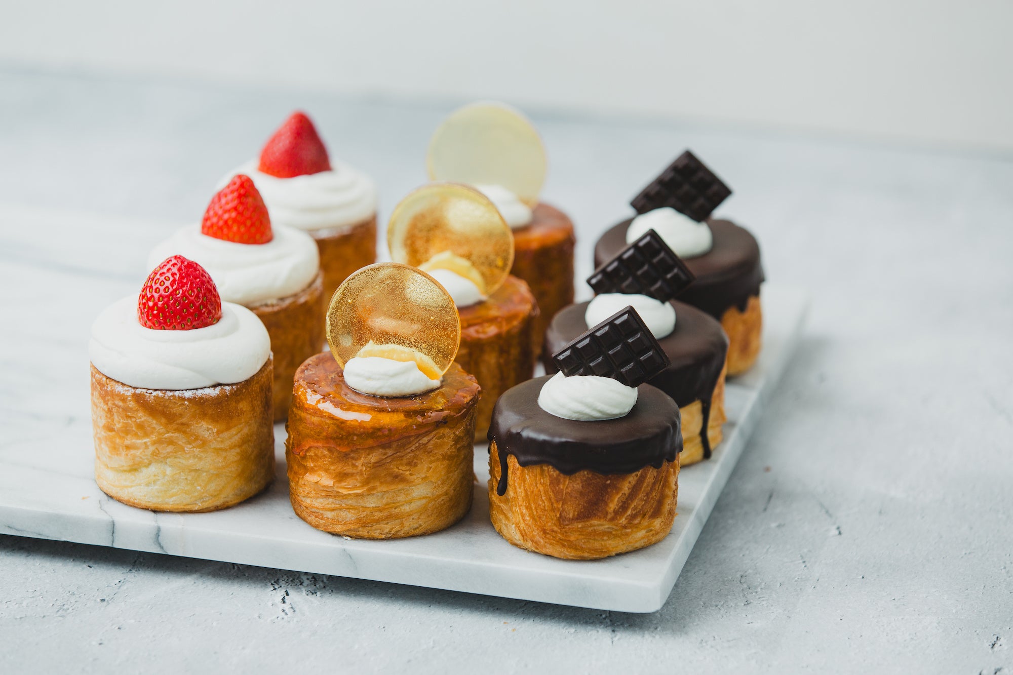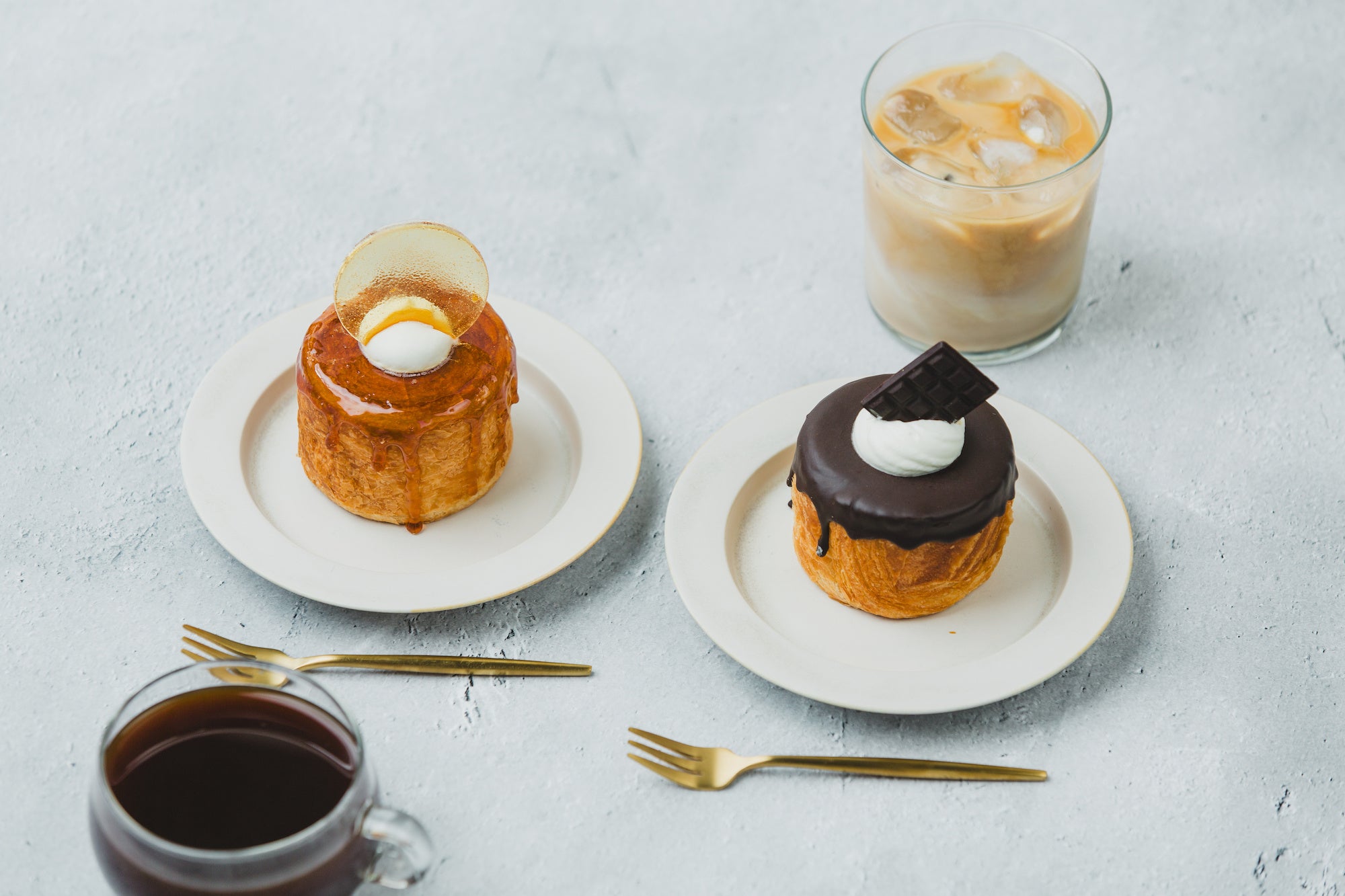 ポイントは、クロワッサン生地を満月状の形に焼き上げ、中にクリームをたっぷりと満たし、かわいらしいトッピングを施している点。プレーヌプリン・いちごショート・ダークチョコレートの3種類をSIGNATUREシリーズとして揃え、季節の移ろいとともにSEASONALフレーバーを加えて展開してまいります。