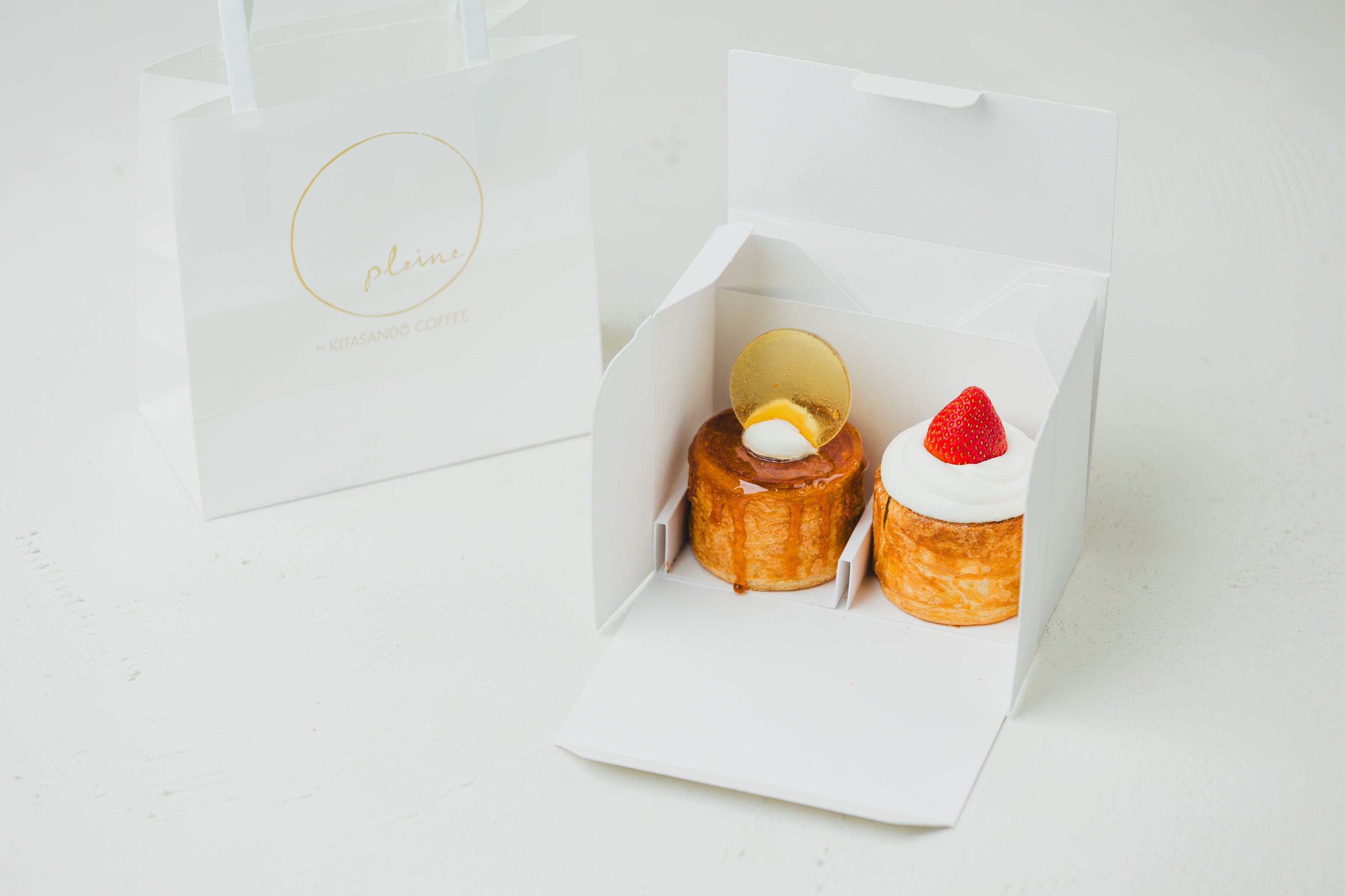 この度biplaneでは、『PARK MARCHE YURAKUCHO』のオープンに合わせ、完全キャッシュレスカフェ『KITASANDO COFFEE』およびロースタリーカフェ『MONNAKA COFFEE』にて好評をいただいてきたクロワッサンスイーツから着想した専門店として、『pleine by KITASANDO COFFEE』を新たにオープンいたします。店名は、フランス語で「三日月」を意味する“croissant(クロワッサン)”に対して、丸い形状から「満月」を意味する“pleine(プレーヌ)”に由来し、名付けました。また、“pleine”は「満たされた」状態を意味する言葉でもあり、「お客さまのおなかと心を満たしたい」という私たちの想いも込められています。