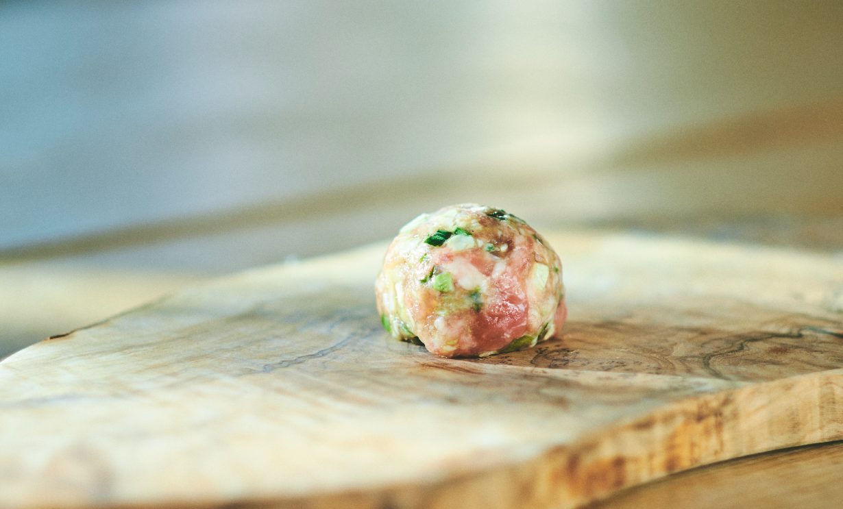そこから生まれる「生餡/蒸餡」という2つの選択肢でした。当社は、火を通さない「生餡」になるため、賞味期限は90日しか持たないというリスクはありますが、蒸餡よりも肉汁の保水量や風味、味は向上します。