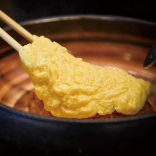 おむらいす亭の卵のあの「ふわトロ」感を出すには、焼き方に秘密があります。卵・空気・油を最高の状態で混ぜ合わせることにより、卵の味を美味しく引き立ています。卵を切るようにし、空気を入れるようにかき混ぜることでふんわりとした卵に仕上がります。単純な工程のように見えますが、ここにも職人技が光っています。