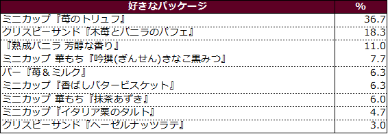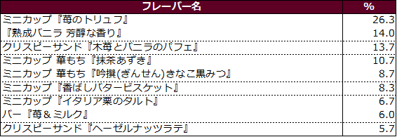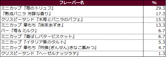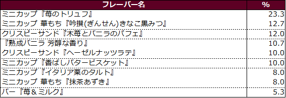 『熟成バニラ 芳醇な香り』、クリスピーサンド『木苺とバニラのパフェ』が続く結果に。