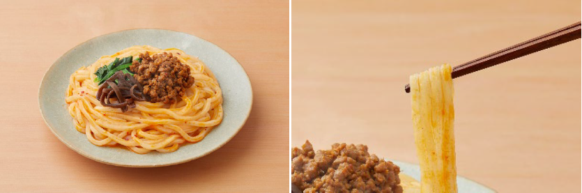 そしてこの度、「1食分で楽しめる主食メニューのラインナップを拡充して欲しい」というお客様のご要望にお応えし、独自開発した「米粉麺」を用いて、植物由来の原材料で仕上げた『米粉麺でつくった汁なし担々麺』と『米粉麺でつくった彩り野菜まぜそば』を新発売いたします。