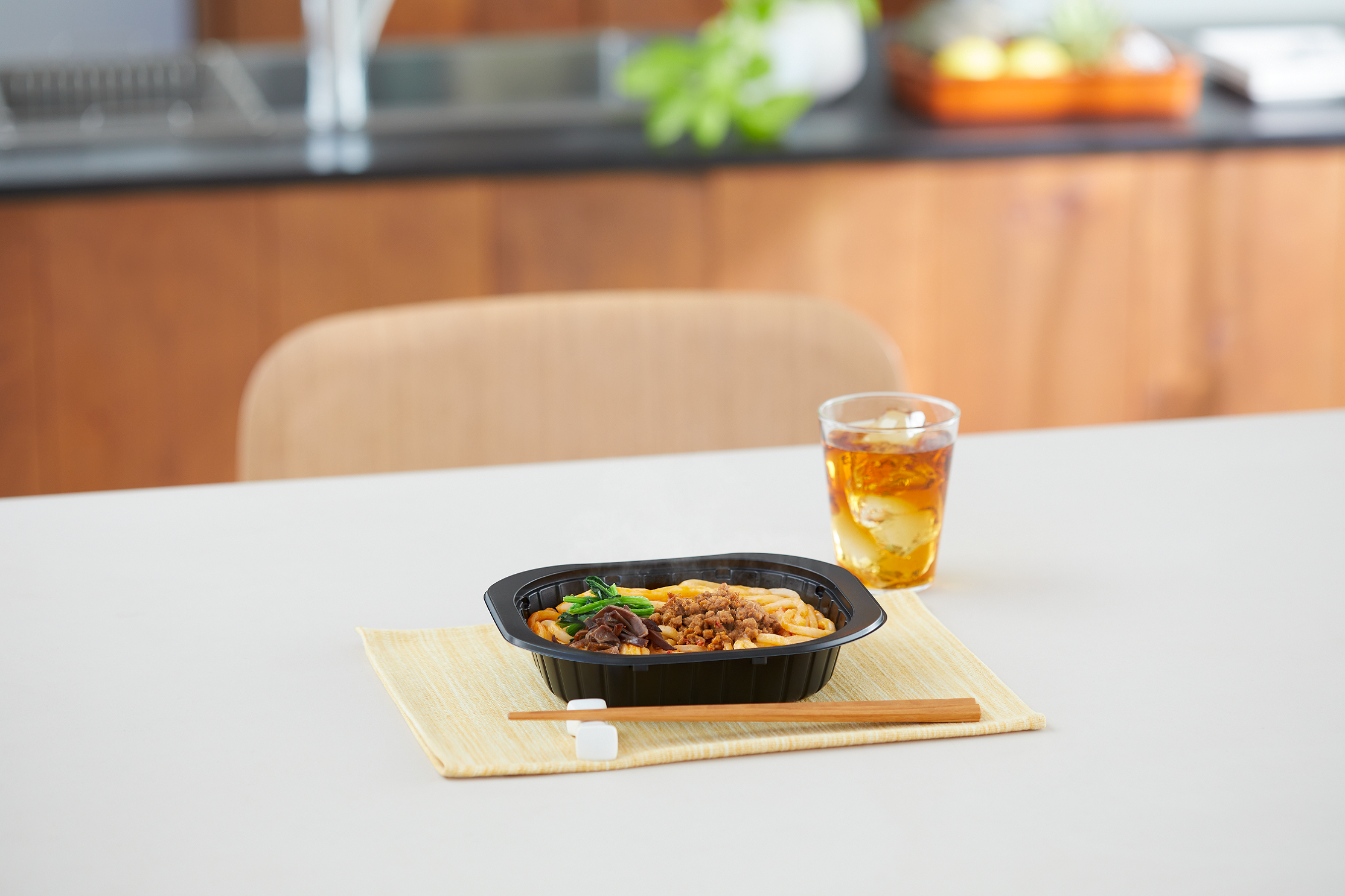 忙しい日も、本品なら電子レンジ調理であっという間に出来上がり。パッと食べたい昼食シーンではトレーのまま、夕食シーンではお皿に移し替えても召し上がれます。