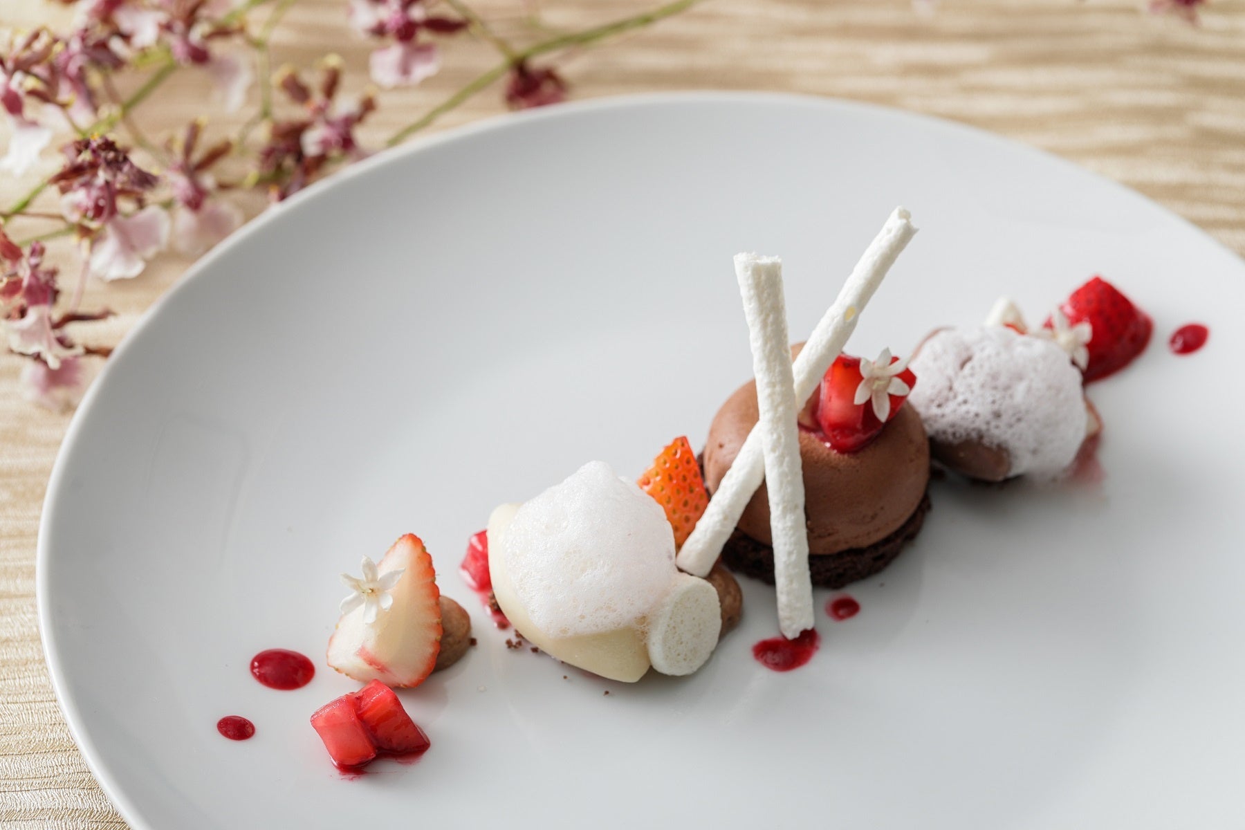 料理長のこだわりが詰まった色彩豊かな本コースは、食材を活かした繊細な味とテクスチャーの、絶妙なハーモニーをお楽しみいただけます。また、コースデザートに関しては、「大人のご褒美パフェ~Strawberry & Chocolate~」に変更(+990円 消費税込・サービス料15%別)も可能。バレンタインでの利用や記念日、女子会での利用がおすすめです。
