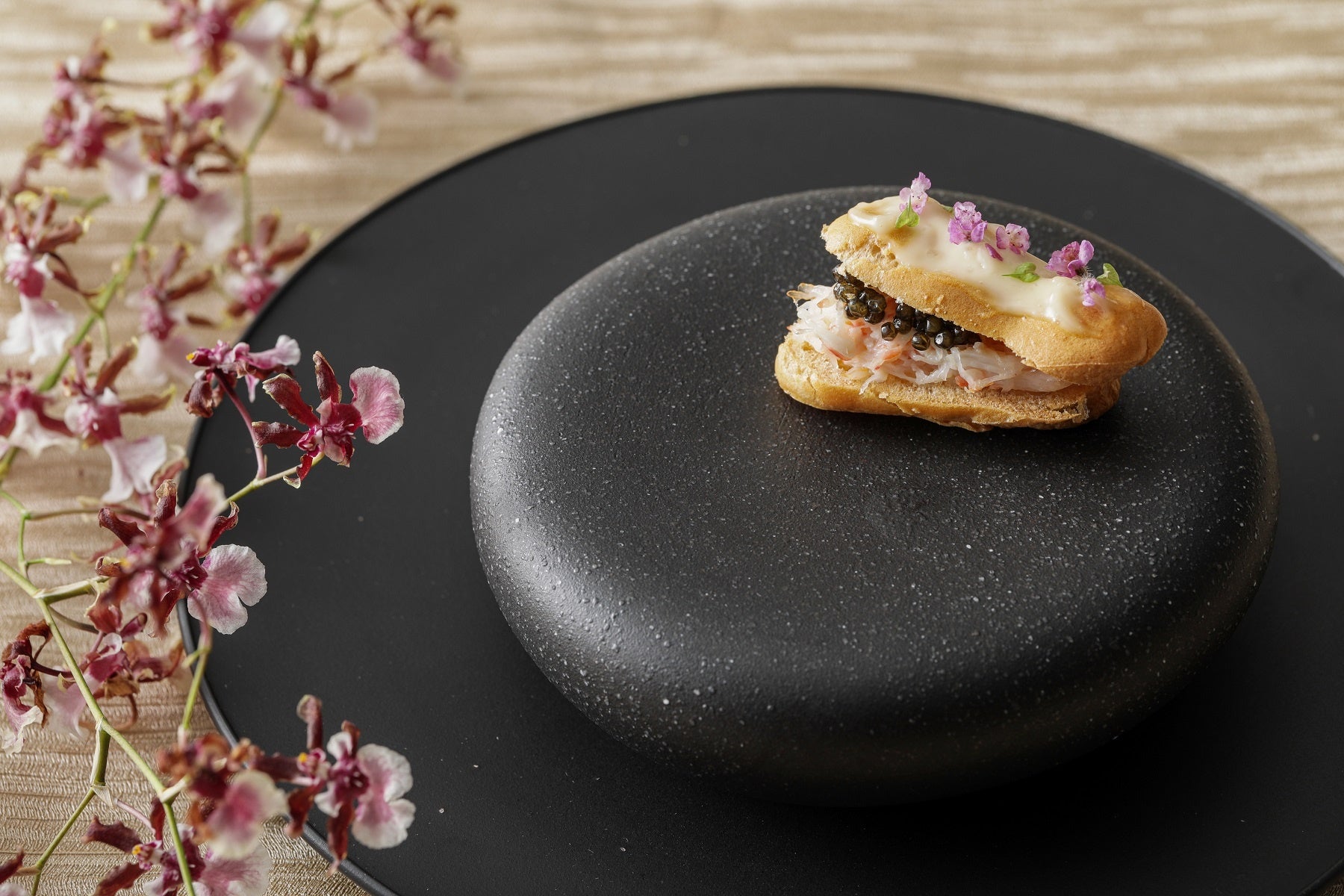 ズワイガニとブラックキャビア エクレア仕立てにして