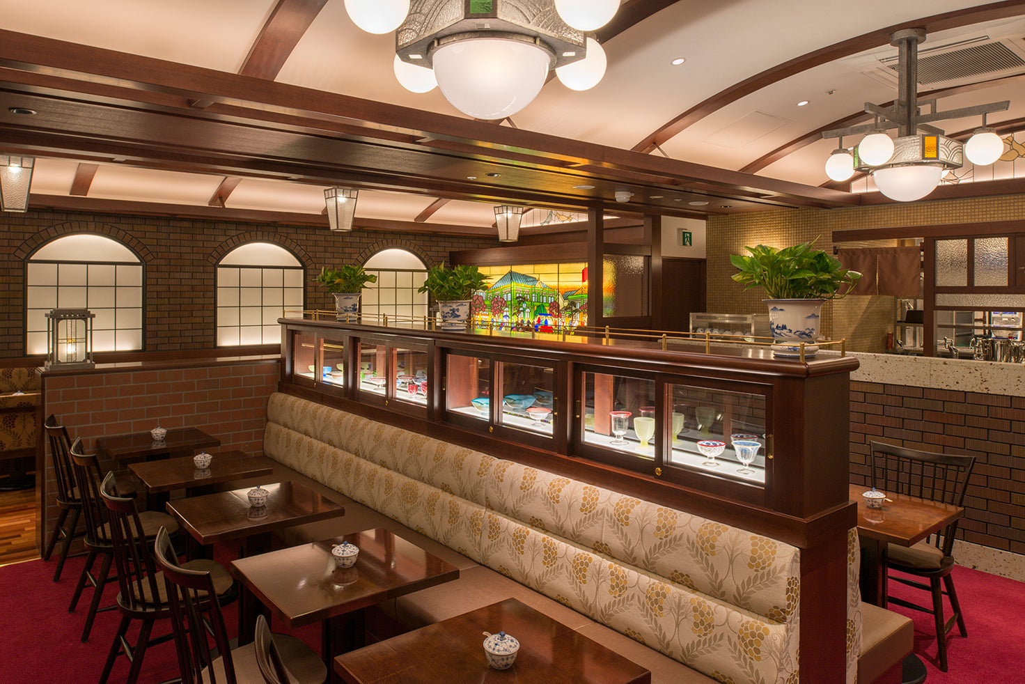 繊細なステンドグラス、アンティークな絵画や調度品など、大正時代をモチーフにしたシックなインテリアと、静かに流れるクラシック音楽が落ち着いた大人の雰囲気を演出します。