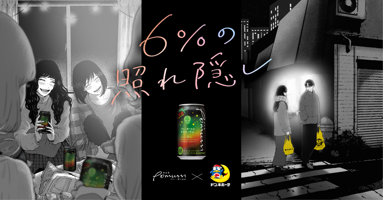 本キャンペーンは、12月12日(火)から、宅飲みから生まれる“エモーショナルな(=エモい)エピソード”を募集します。応募いただいたエピソードから優秀作品を選出し、若い世代から絶大な支持を受ける人気イラストレーター/漫画家のますだみく氏によってエピソードをイラスト化。全国のドン・キホーテ限定の店頭POPとして掲示します。今回のキャンペーンプロモーション『6%の照れ隠し』を通して、ドン・キホーテでの買い物の帰り道から帰宅後の宅飲みの”エモい”エピソードをZ世代から波及させ、共感の輪を広げることを目的としています。