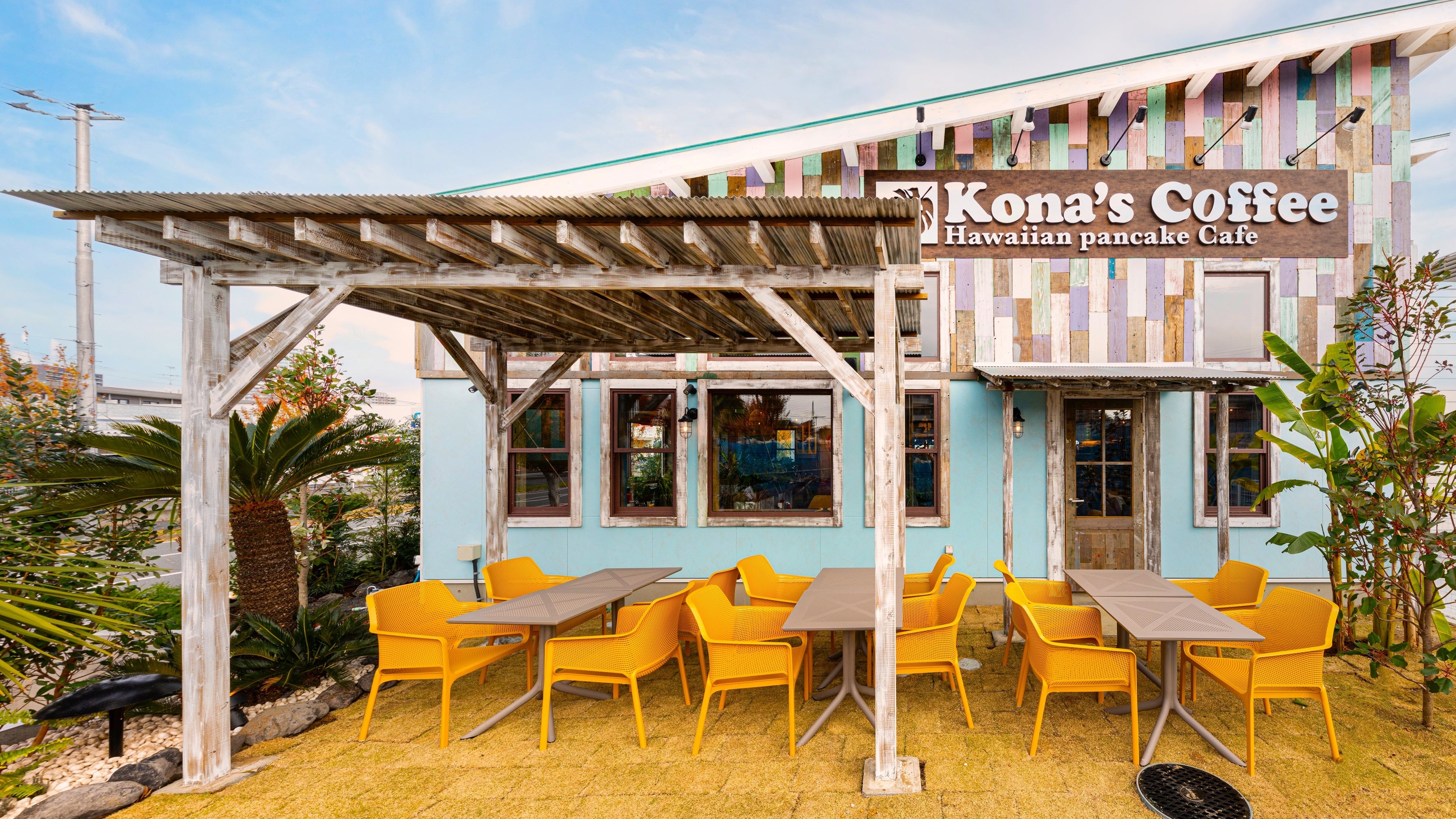 コナズ珈琲は「いちばん近いハワイ」をコンセプトに掲げ、ハワイで過ごす休日のような心地よく楽しい時間と食事を提供するハワイアン カフェ・レストランです。千葉県内2店舗目となる八千代緑が丘店は、コナズ珈琲が提供する「いちばん近いハワイ」をより体感いただけるよう、ヤシの木で装飾したビーチリゾートを思わせるバーカウンターや高い吹き抜け天井の開放的な空間、ハワイアンキルトなどのアートや植栽を眺めながらお席ごとに異なる景色をお楽しみいただける店舗づくりにこだわりました。さらに全国最大規模の客席数となる134席をご用意するほか、ペットと一緒にハワイ気分を楽しめるテラス席やインナーテラス席も完備しています。