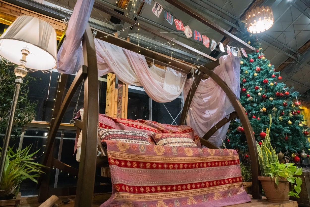 Xmasに飾り付けされたブランコやクリスマスツリーのフォトスポットをご用意してお待ちしております。