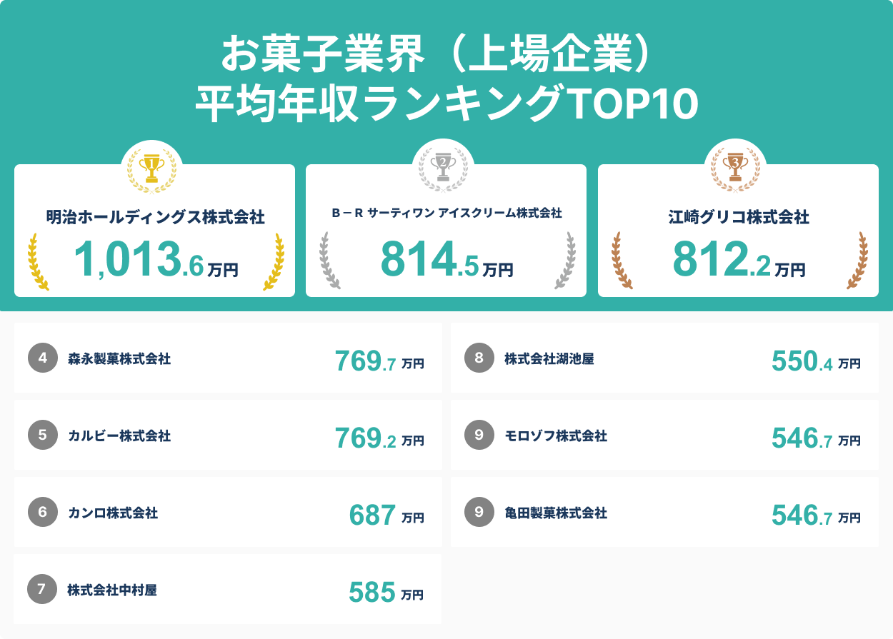 日本最大級のデータベースを誇る「SalesNow DB」において、お菓子業界における各企業(上場企業)の平均年収について調査しました。