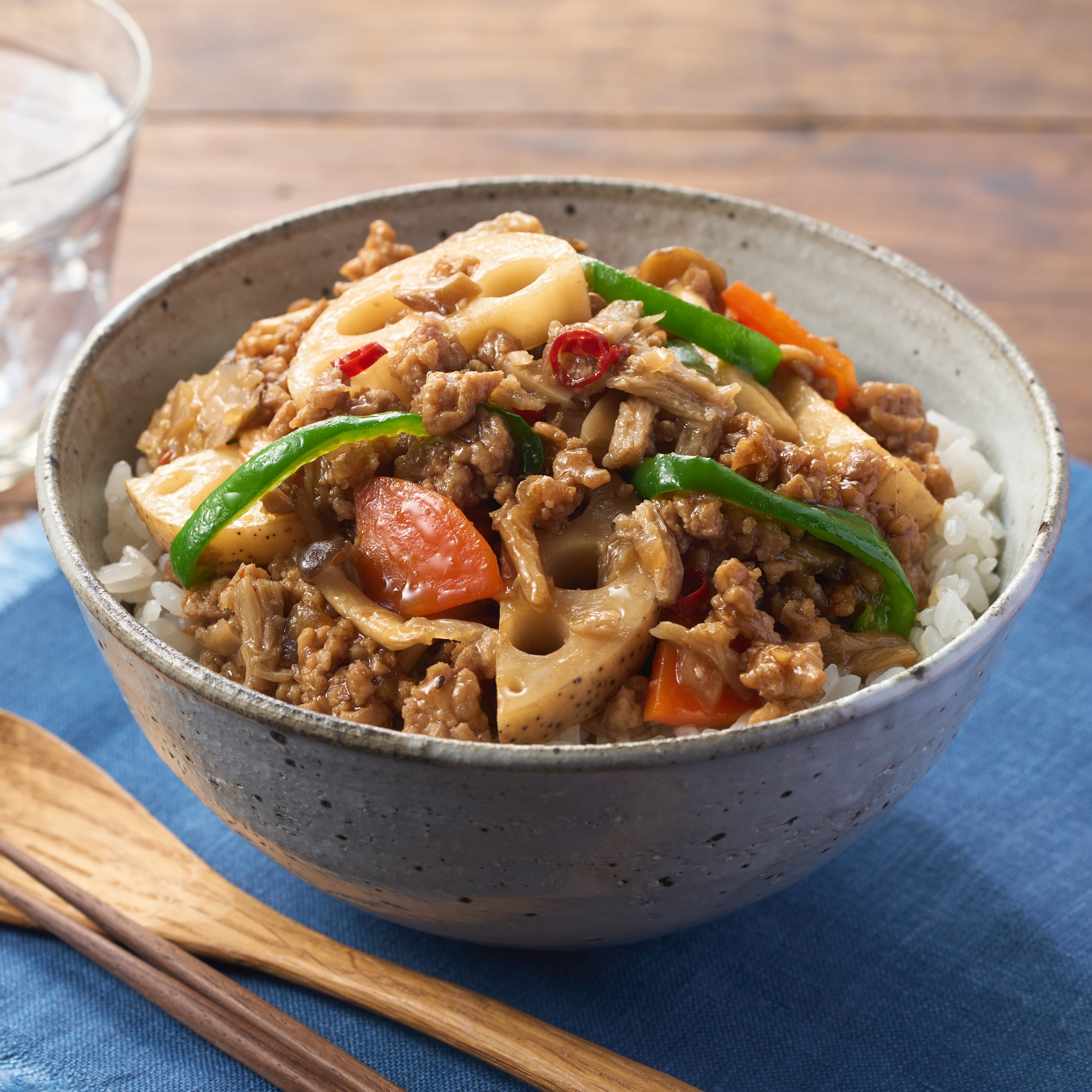栗原心平きのこ軸オイルのあんかけそぼろ丼 2人前 1,727円(税込)