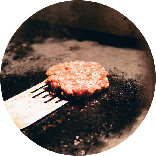 自慢のパティは和牛を中心に5種類の部位を独自ブレンドし、肉の食感を楽しんで頂くため粗挽きを使用しています。