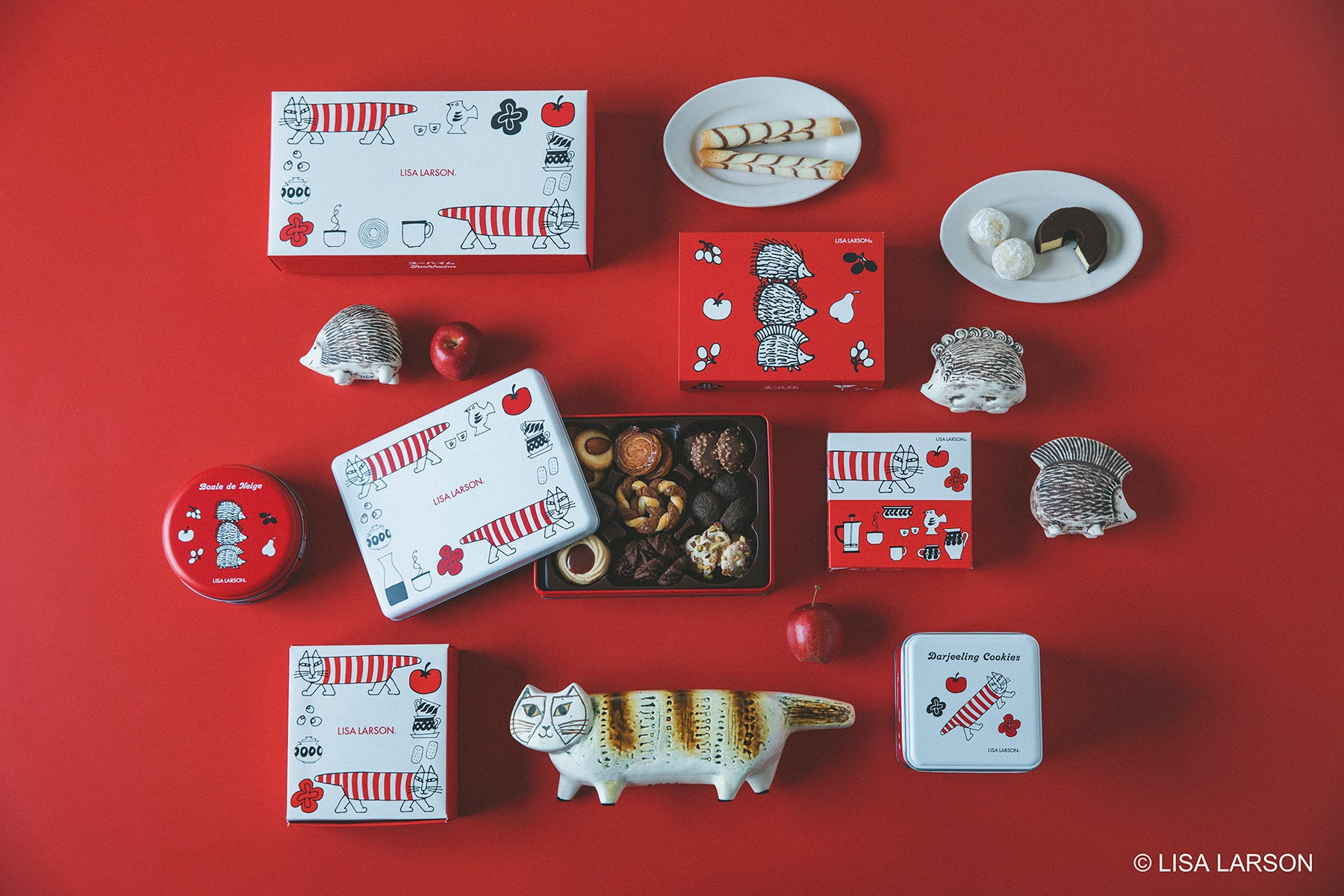 猫の「マイキー」や「ハリネズミ3兄弟」のイラストを描いたパッケージは、華やかで温かみのある赤色がメインの新デザインにリニューアル。