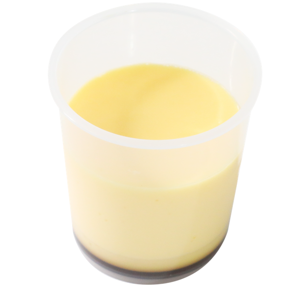 こだわり:カカオのほろ苦さを残しつつ、なめらかな食感のプリンに