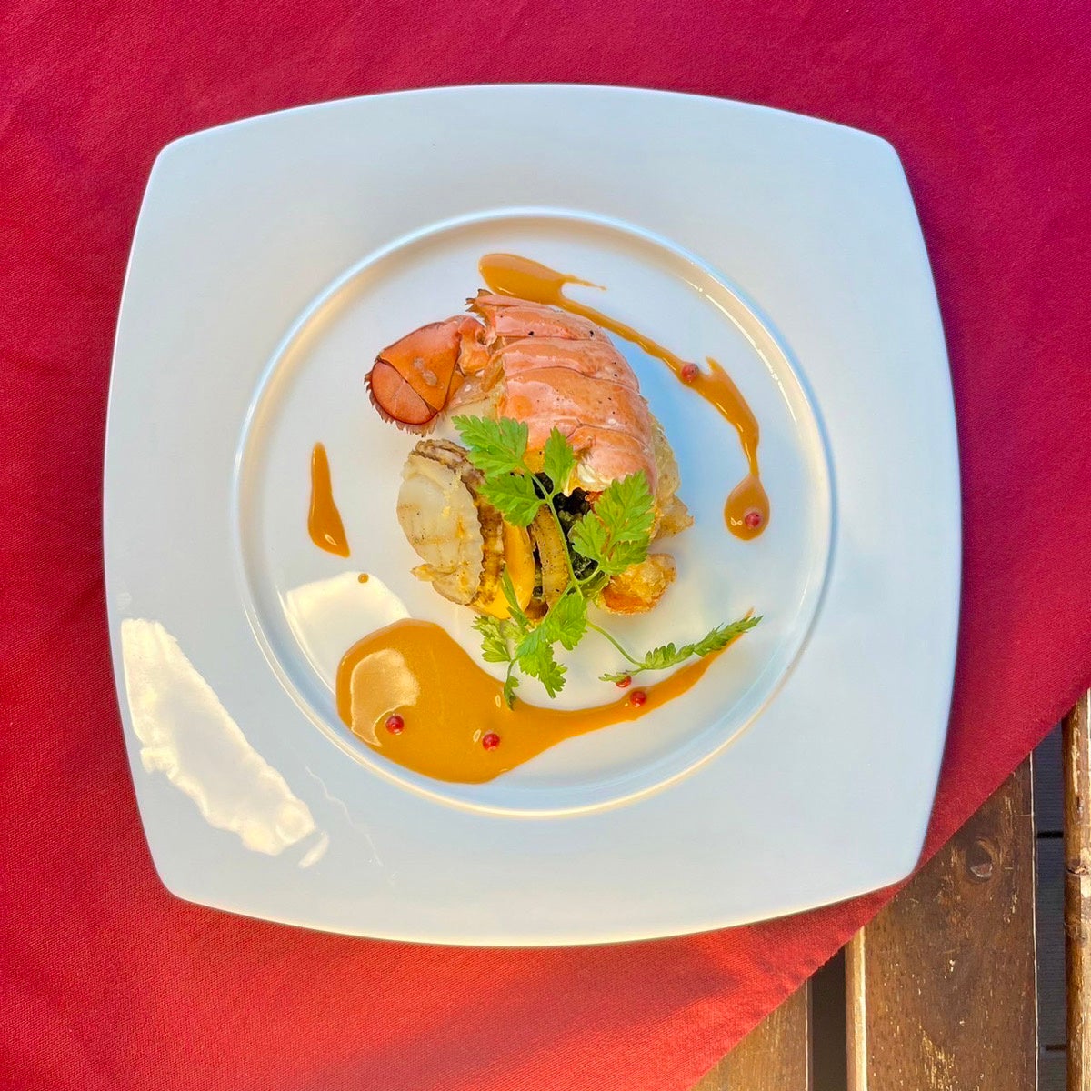 [魚介メイン]オマール海老と帆立のフリット 〜ソースアメリケーヌクレメ〜