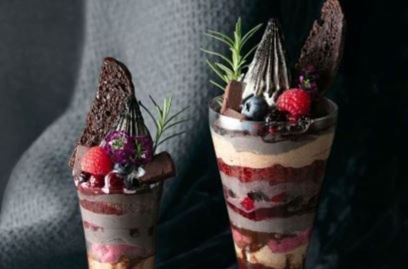 ■『チョコレートパフェ』 構成要素 (グラス下部から上に) 赤ワインカシスジュレ / 赤ワインチョコレートソース / ミックスベリーシャーベット / ティラミス&ティラミスクリーム / チョコレートシリアル / ベルギーチョコレートアイス / ココアクリーム / チョコレートクランチ / チョコレートチップ / 赤ワインチョコレートソース / ココアクリーム / クレミアソフト&ブラックココア / ミックスベリースパイスマリネ / ラズベリー・ブルーベリー / チョコレートケーキ / チョコレートラスク / フラワー・ローズマリー |
