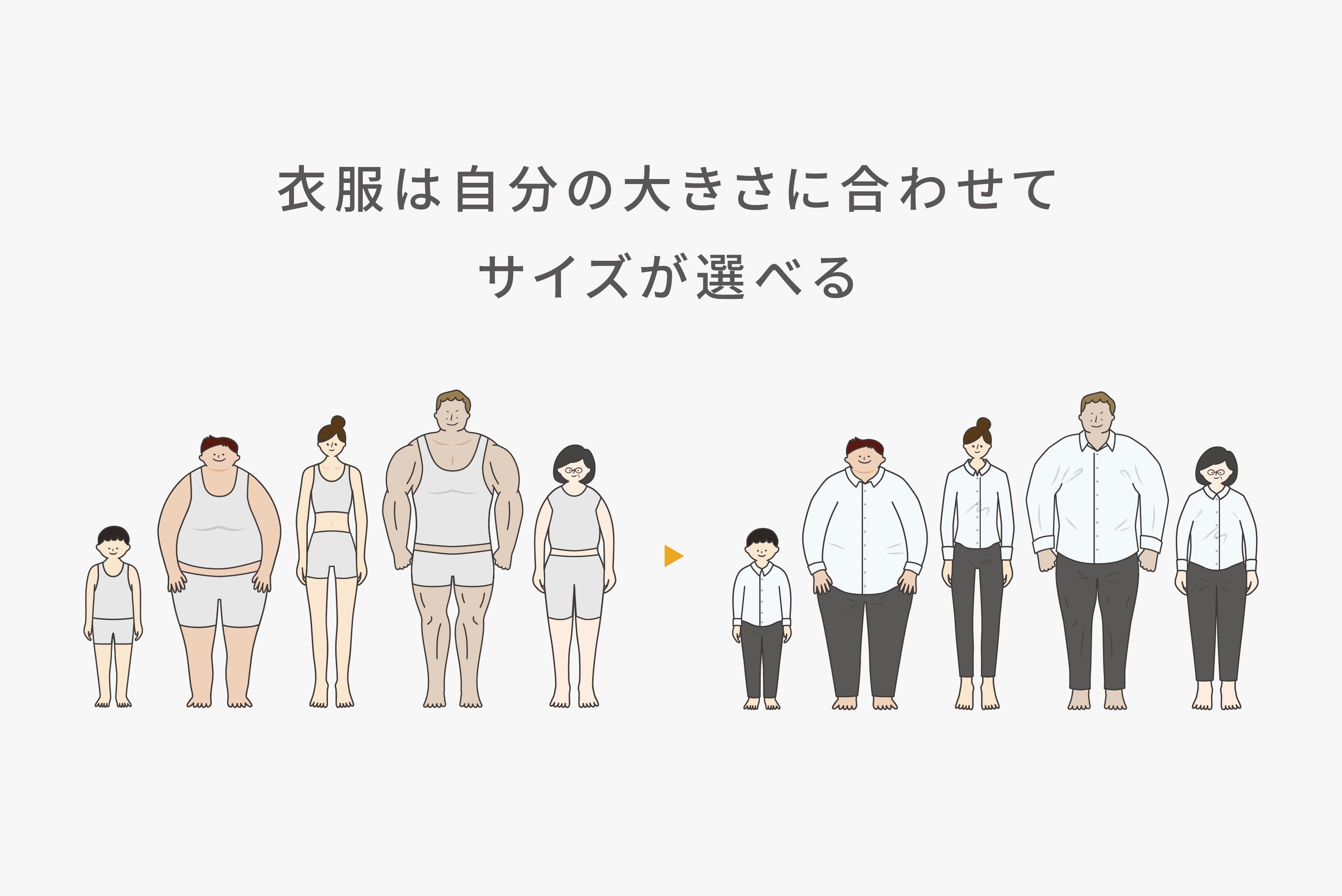 衣服は体の大きさに合わせて自分に合ったサイズ選びができるのは当たり前です。しかし食品においては、体質や環境によって必要な栄養が異なるにも関わらず、同じ栄養価が配合された食品しか選択することができませんでした。