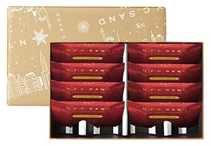 定番の「N.Y.キャラメルサンド」「N.Y.スカッチサンド」、期間限定の「N.Y.メープルウォールナッツキャラメルサンド」、「N.Y.アップルパイキャラメルサンド」の4種を、遊び心のあるニューヨークの街並みに冬の訪れを感じるデザインをあしらった限定ボックスに詰合せました。