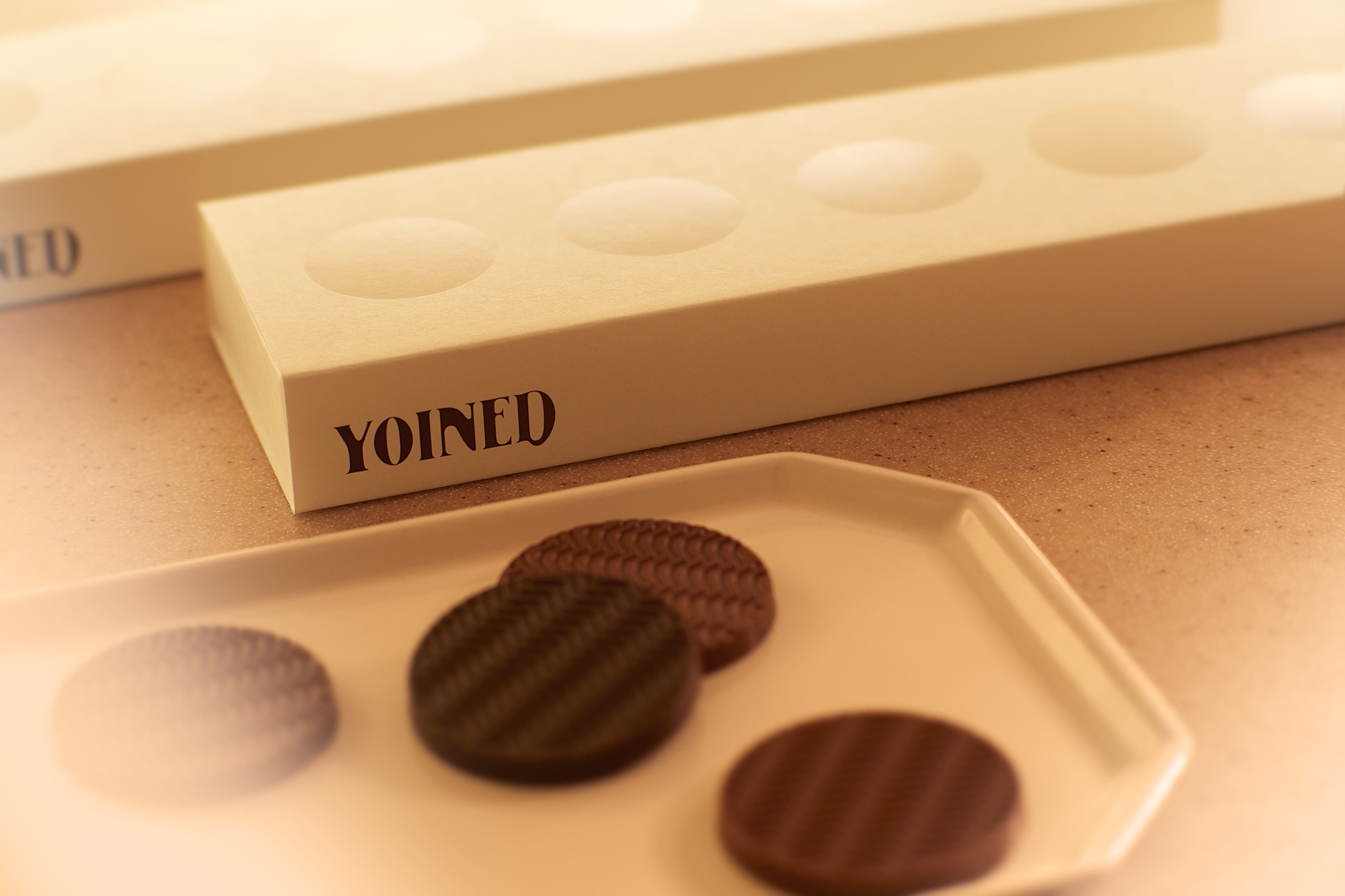 香りを閉じ込めて“食べる”ことで、コーヒー豆の魅力を余すことなく堪能できる『YOINED』は、「CRAZY BLACK」と「MELLOW BROWN」の2種類を3枚ずつアソートしています。それぞれ異なる味覚によって、2種類の濃厚なコーヒーの余韻を楽しむ時間をぜひお楽しみください。