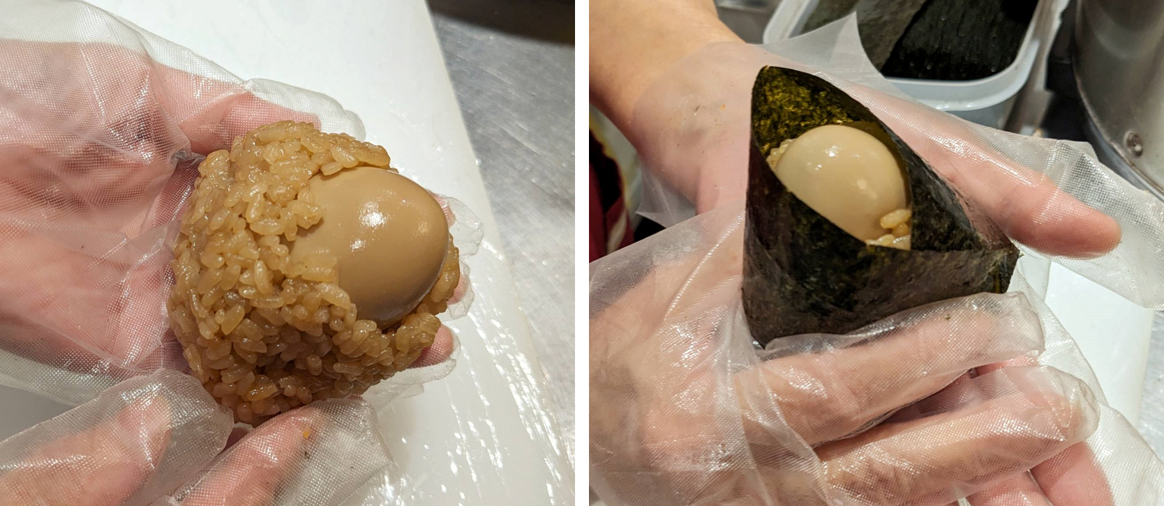 トロッとした大きな煮卵がおにぎりの中に入っていて、1個でもしっかりとボリュームがあります。