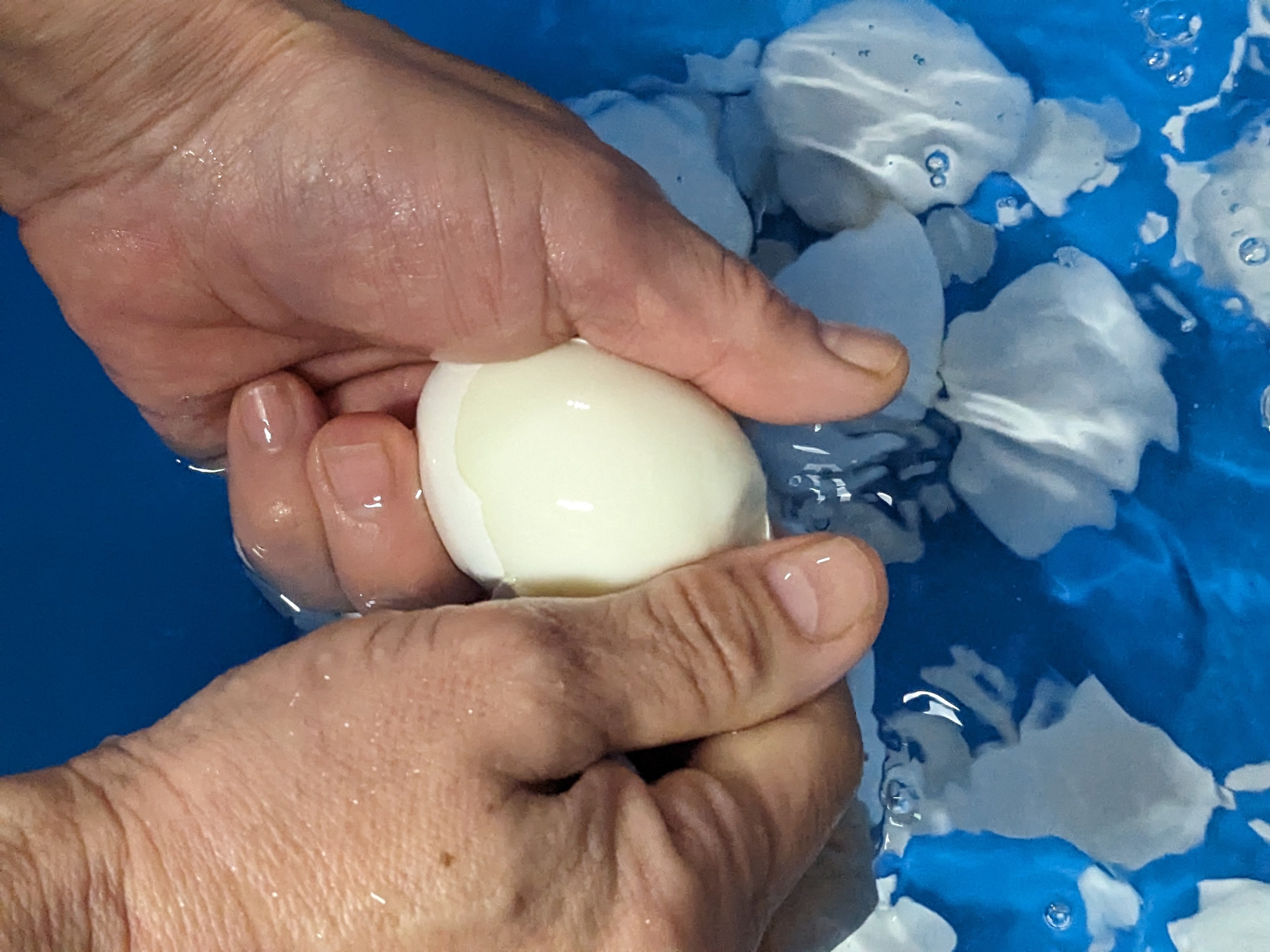 トロっとした半熟になるように時間を調節して茹でて、1つ1つ丁寧に剥いていきます。