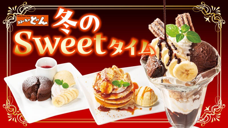 『ステーキのどん』では、2023年12月15日(金)から「冬のSweetタイムフェア」を実施いたします。たっぷりのチョコレートやキャラメル、とろ~り口どけにもちもち食感など、みんなの“大好き!”を詰め込んだ全4種類のデザートをご用意しています。