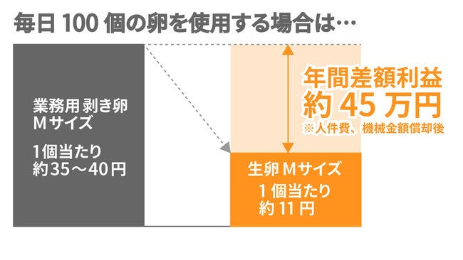 さらに、業務用殻むき卵を使用している場合は大幅なコストダウンも狙えます。